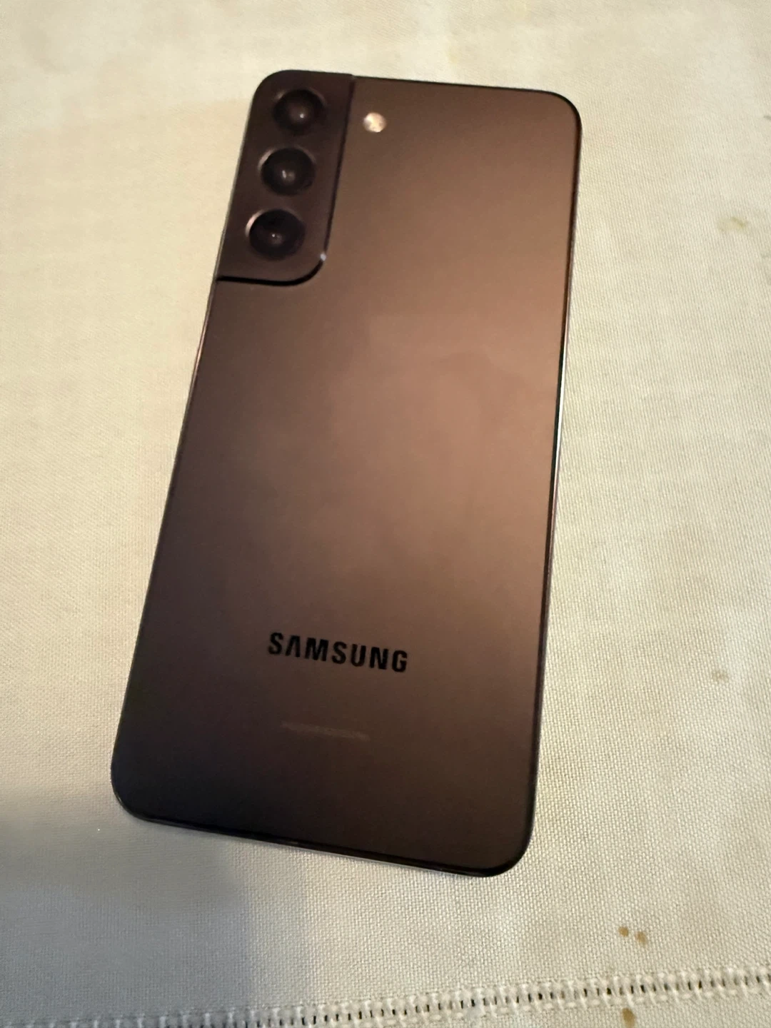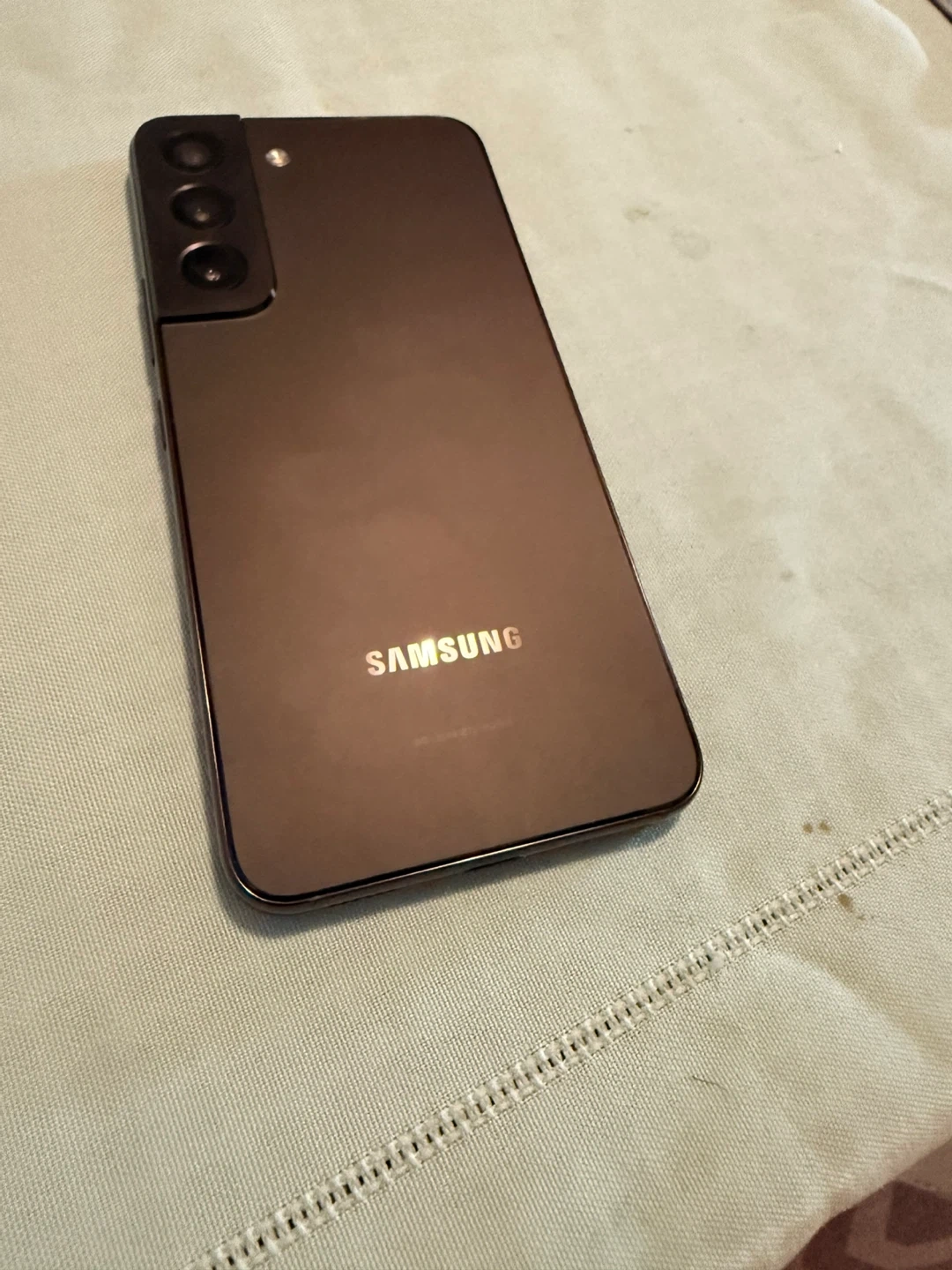 A Samsung Galaxy S22 smartphone in a brown finish. This phone features multiple camera lenses on the back. It's perfect for staying connected and capturing photos.