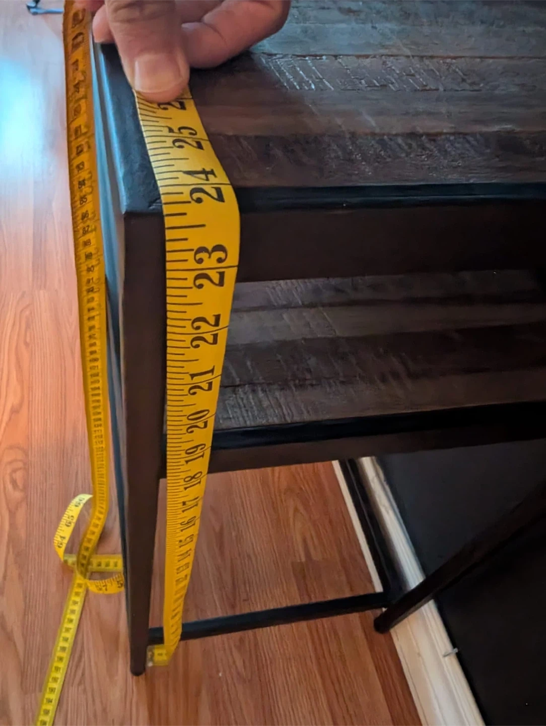Selling a rustic-style TV stand with a metal frame and wooden shelves. It's in great shape and perfect for adding a touch of industrial charm to your living room! The dimensions are approximately 48 inches wide, 24 inches tall, and 12 inches deep.