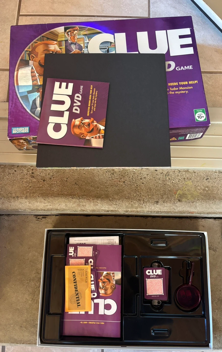 It's the classic game of mystery with a twist! This Clue DVD Game lets you solve the mystery using your TV. Includes the DVD, game board, cards, confidential files, magnify glass and tokens. Fun for the whole family ages 10 and up!