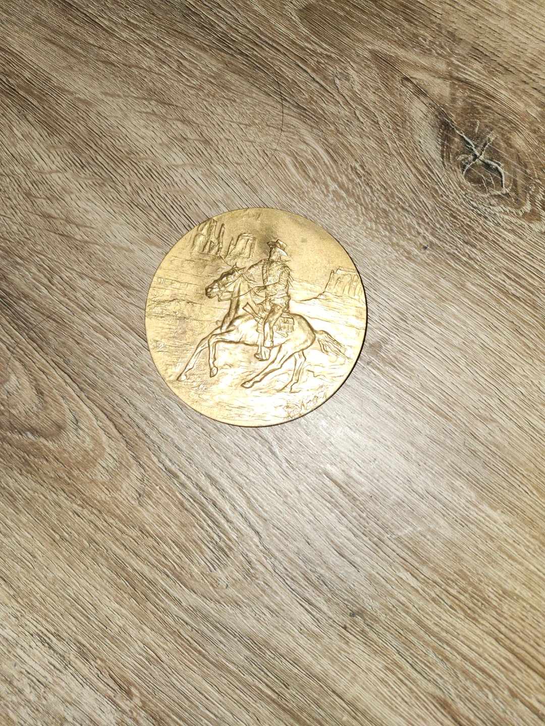 Commemorative medal featuring John Wayne. One side shows his portrait with "John Wayne American" text. The reverse depicts a cowboy on horseback.