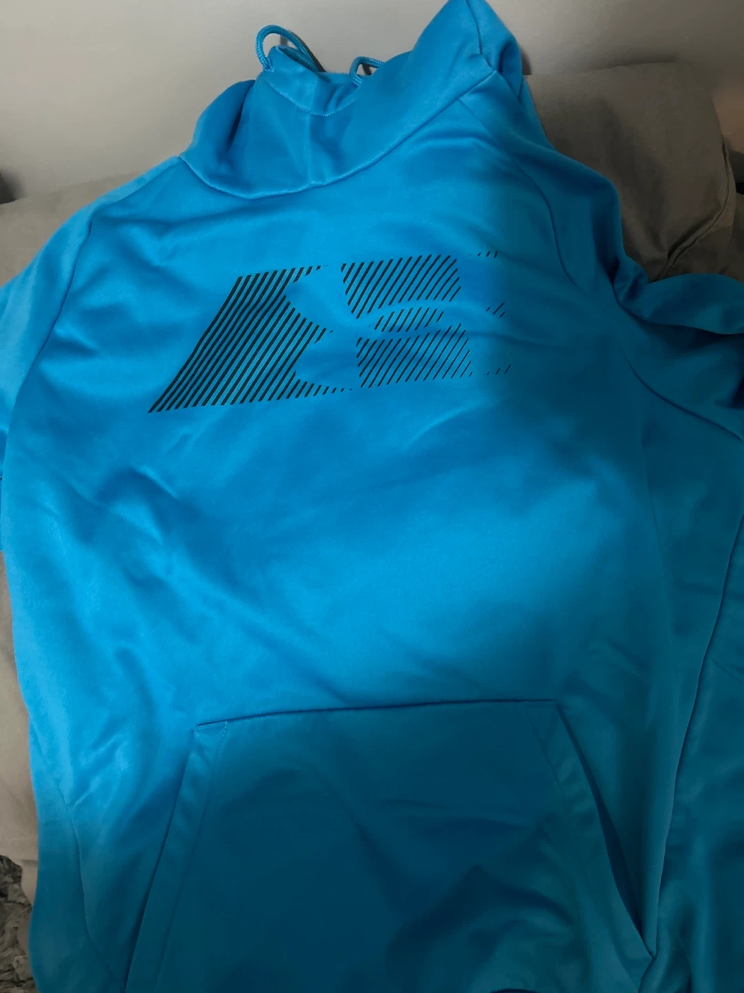Selling a blue Under Armour hoodie in size medium! It's in great condition and ready for a new owner. Perfect for staying warm during workouts or just lounging around never worn either fluffy and new