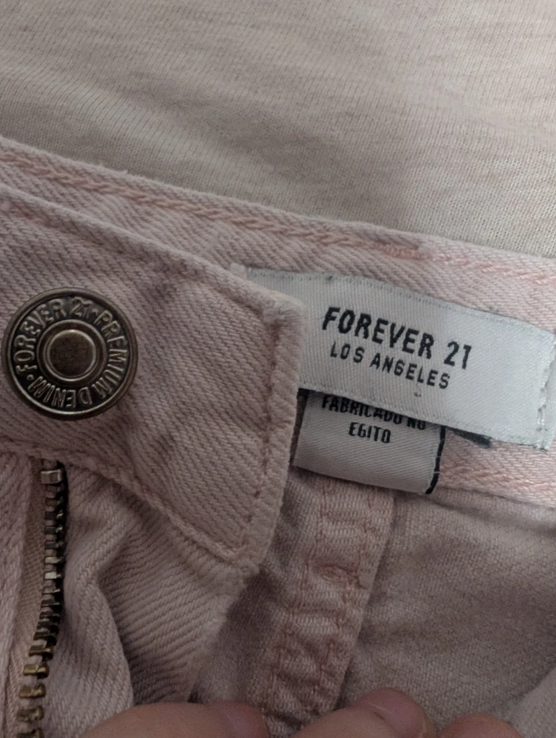 Selling a pair of Forever 21 distressed jeans. They are light pink and have a good amount of rips and tears for a stylish look!