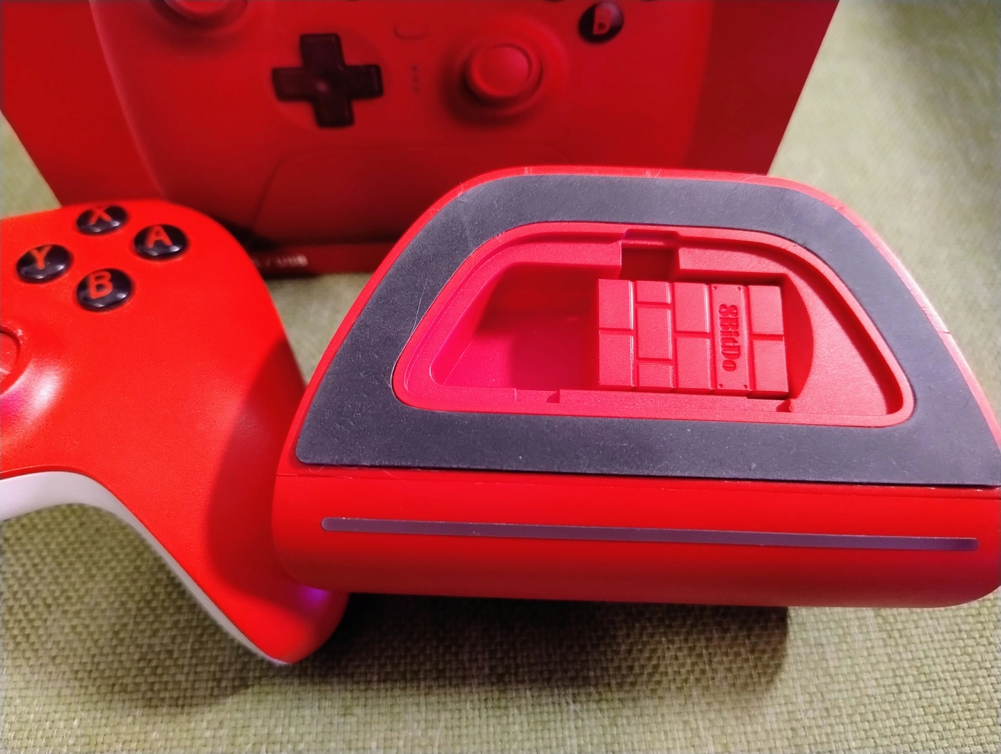 Selling a red 8BitDo Ultimate Bluetooth Controller! It's in great shape and comes with the charging dock and Bluetooth adapter, although the charge dock charging port pins are seized and either needs to be replaced or the dock is just a stand only. The usb dongle however does still work and the controller can still be charged with a usb-c cord. The box is included too! Asking $40, for pickup only.