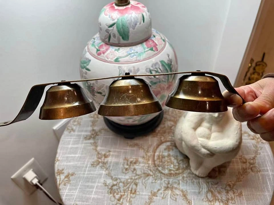Vintage Triple Brass Hanging Bells – Rustic Farmhouse Decor