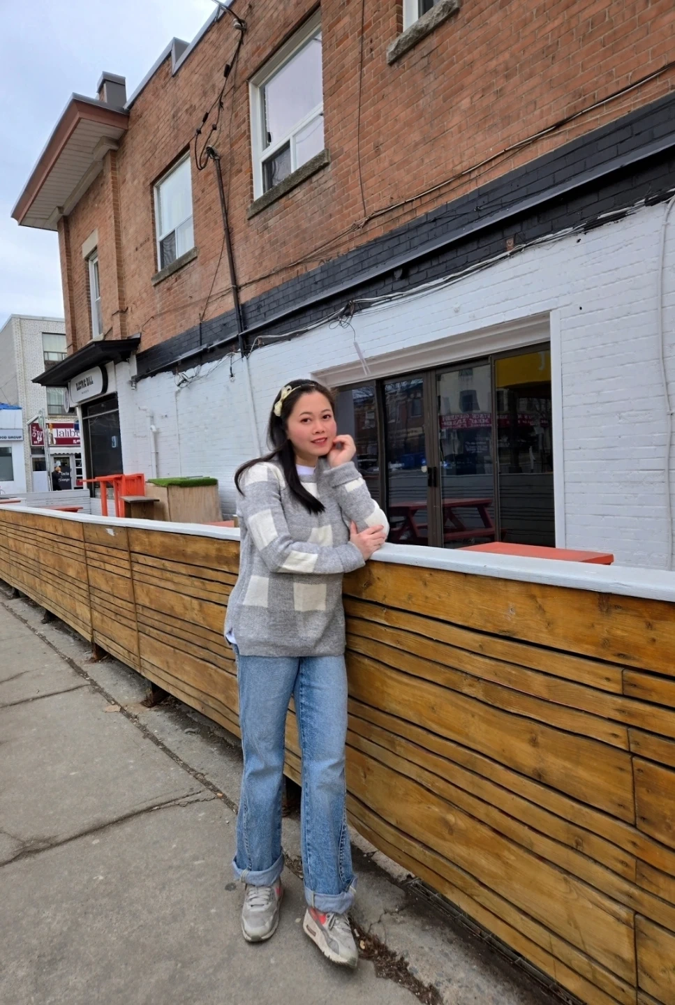 Old Navy Plaid Sweater - Grey/White - Size M
