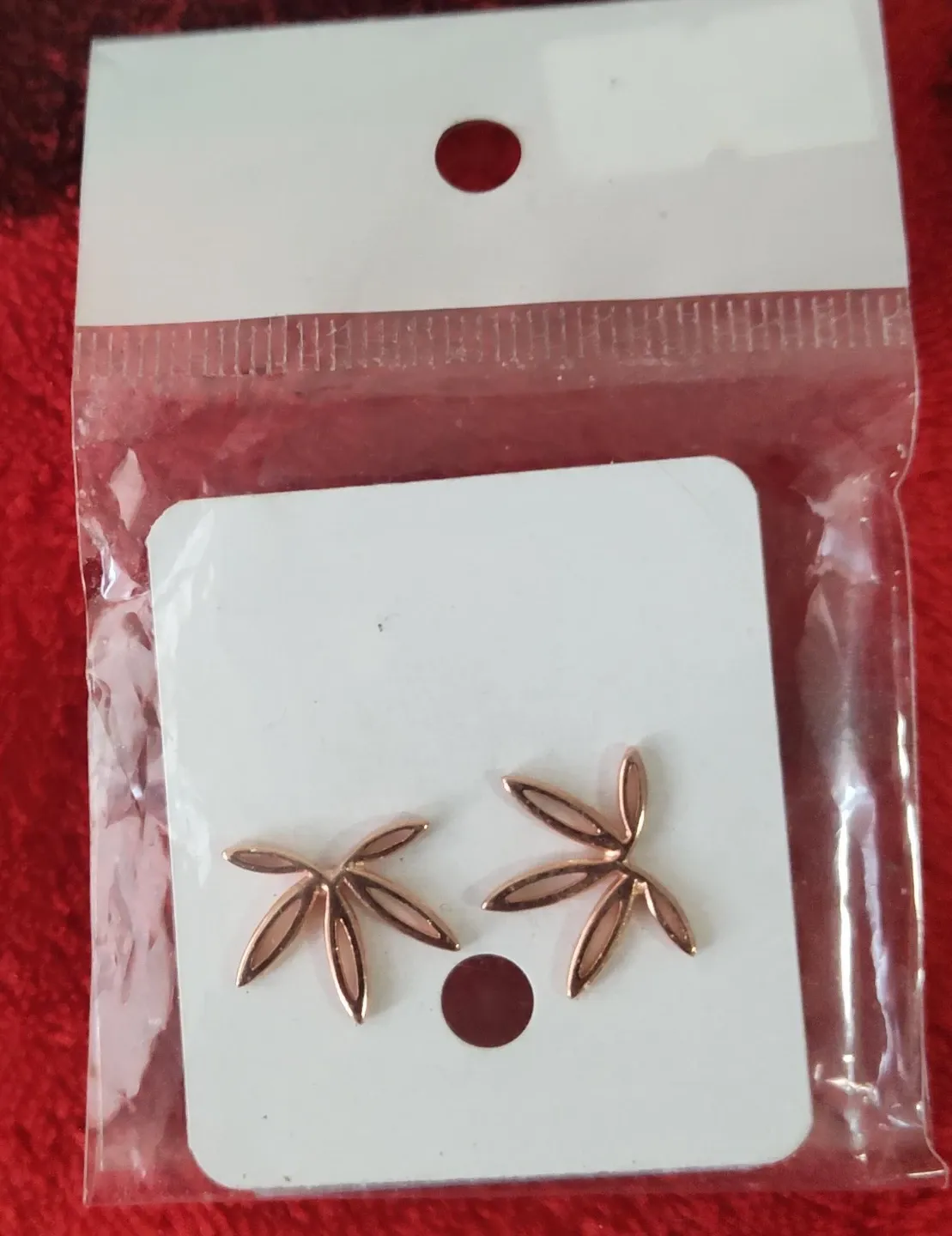 Cute rose gold coloured stud earrings shaped like small leaves. These're perfect for adding a touch of nature to your everyday look!