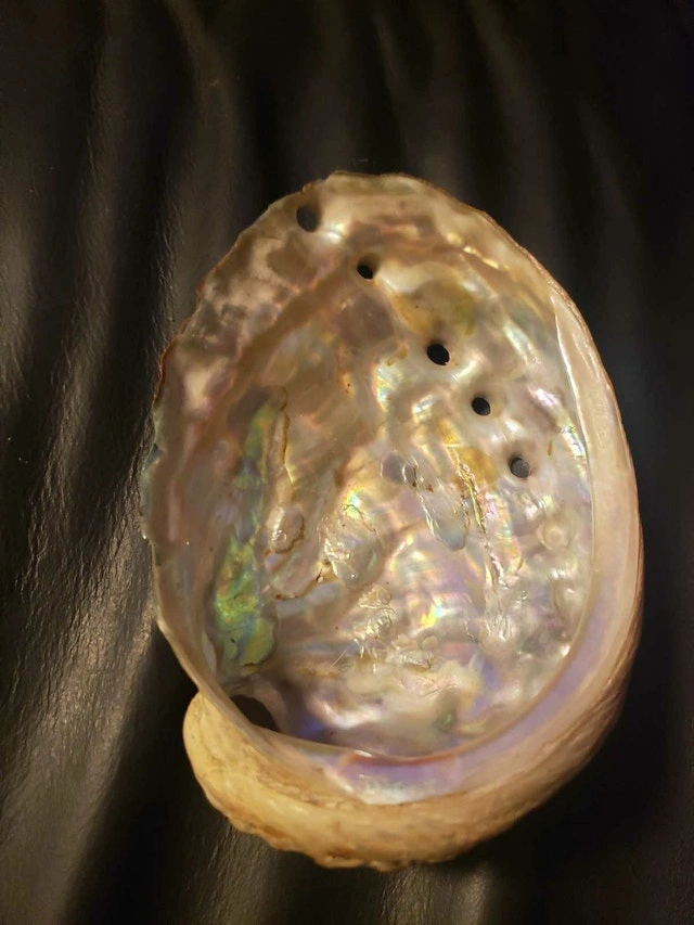 This is a used abalone shell with beautiful iridescent colours. It has a few small holes. Perfect for display or craft projects. It's been sitting on my shelf, adding a touch of ocean magic to my room, but now it's time for it to find a new home, perhaps with you! If the ad is up, it's still available!