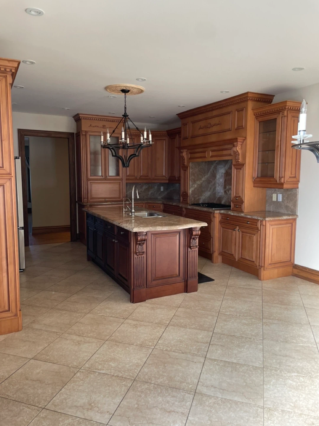 Beautiful wood kitchen cabinets with granite countertops. Includes the cooktop and wall oven. Must take it apart yourself with your own transportation. Refrigerator not included.
