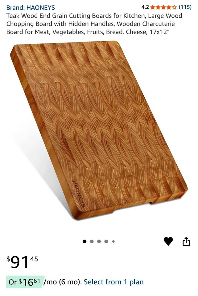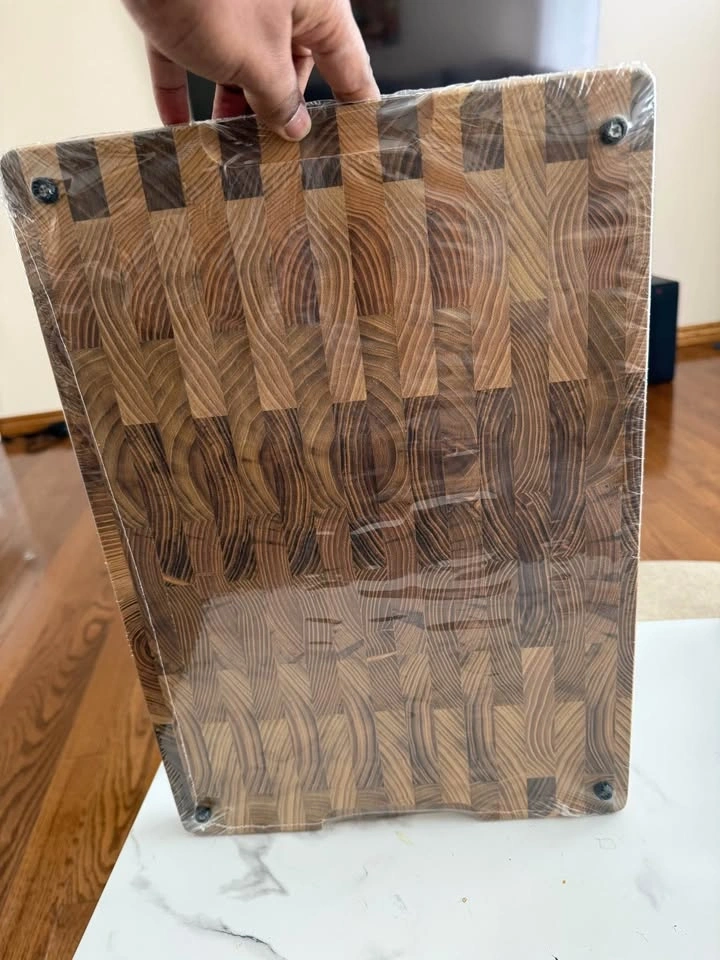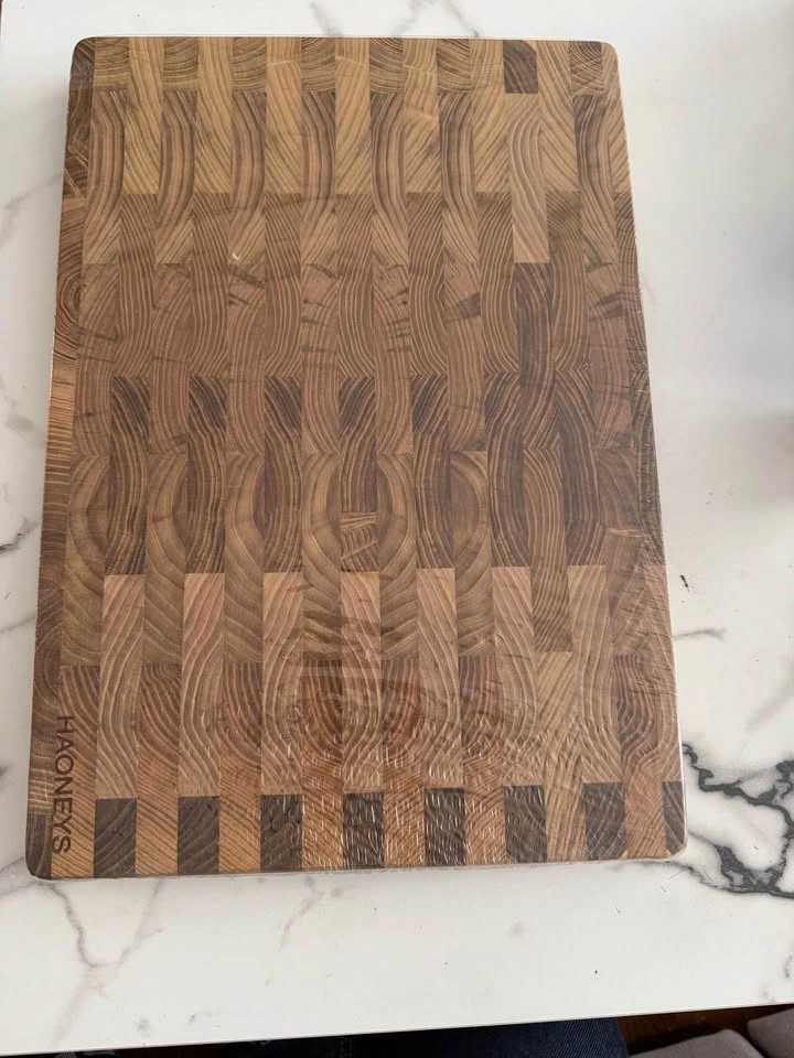New Teak Wood End Grain Cutting Boards for Kitchen. Large wood chopping board with hidden handles, wooden charcuterie board for meat, vegetables, fruits, bread, and cheese. Size 17x12". Very heavy teak wood.