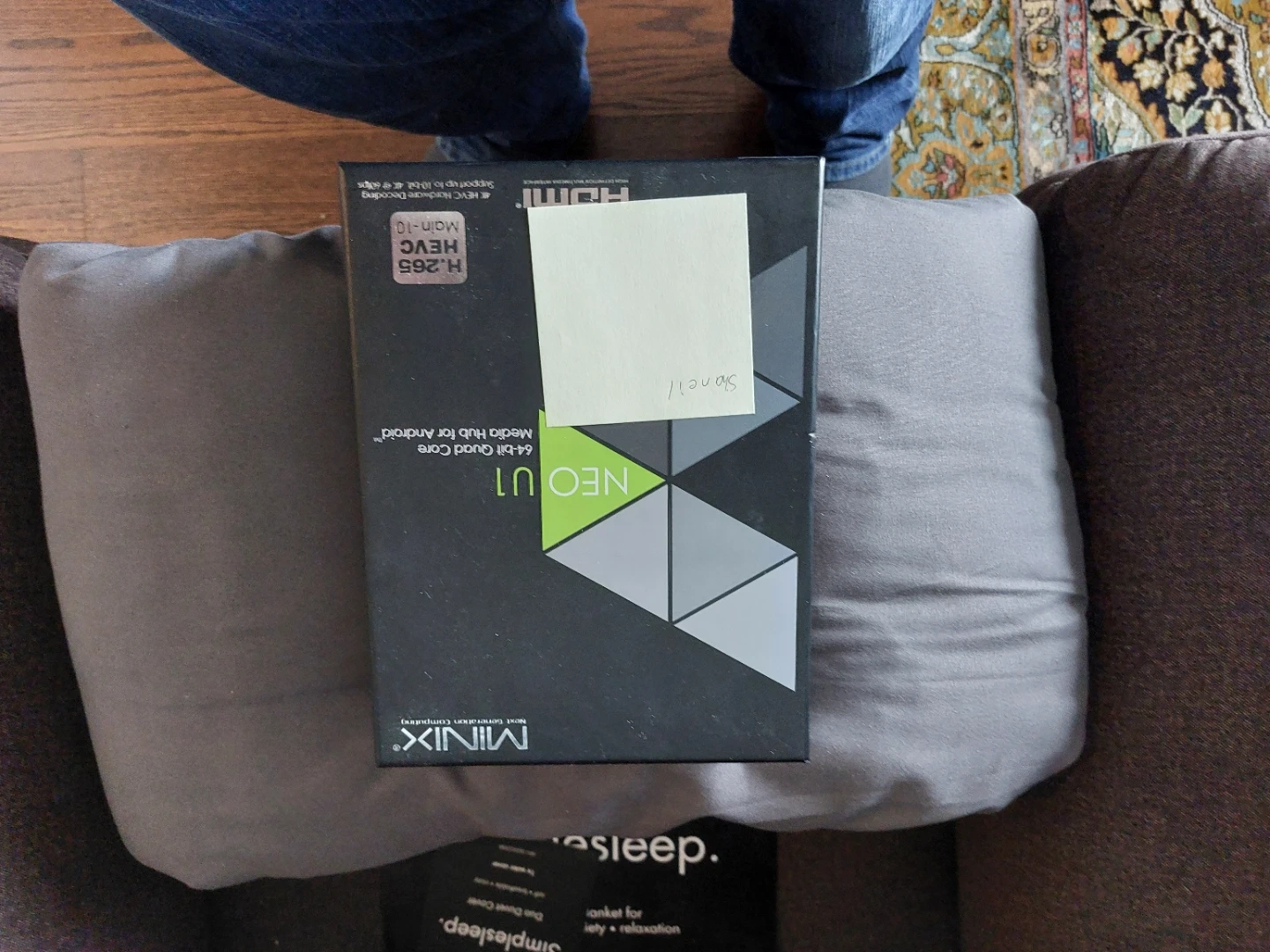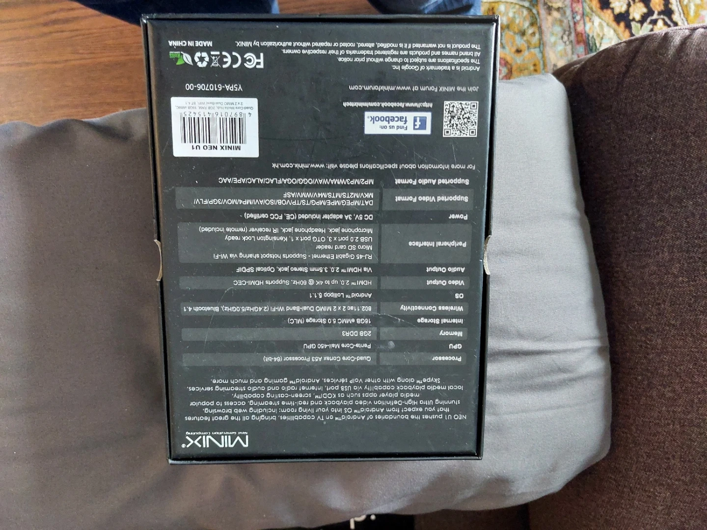 This is a MINIX NEO U1 Media Hub. It's powered by a Quad-Core A35 processor and has 2GB of RAM. It supports H.265 and HEVC video decoding. This device is great for streaming media.