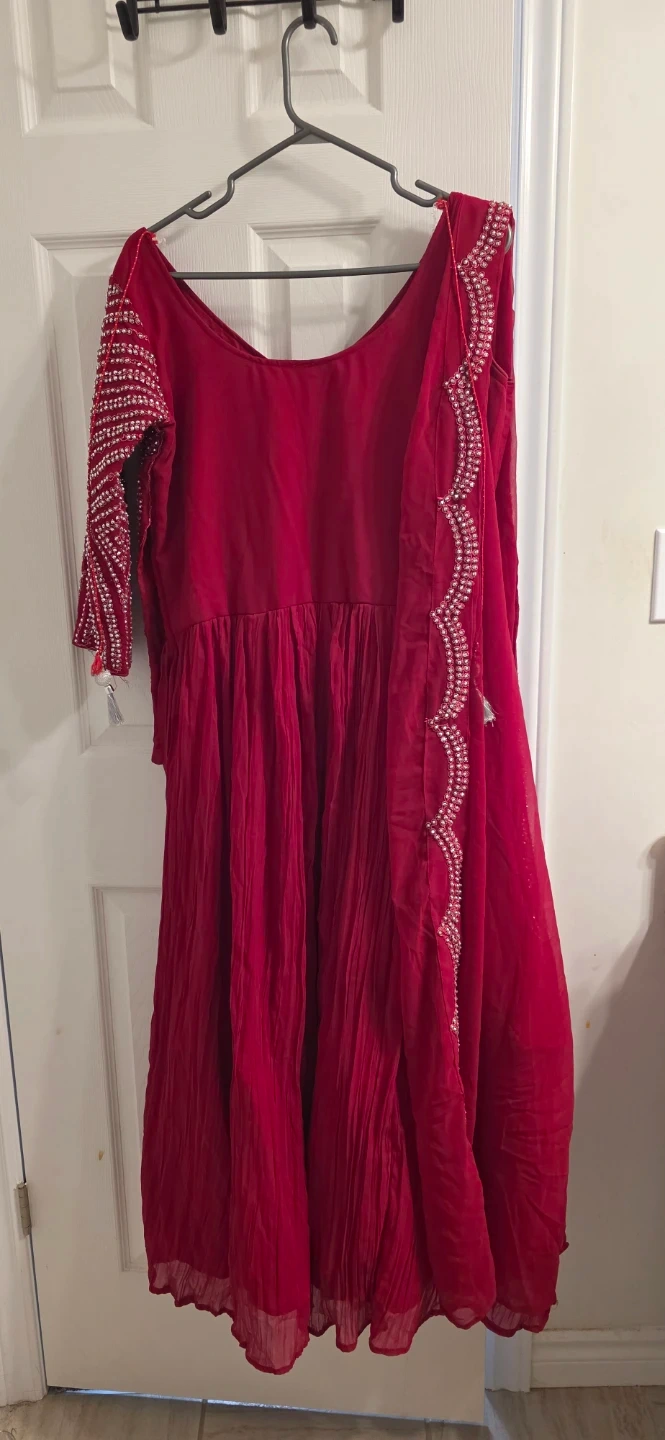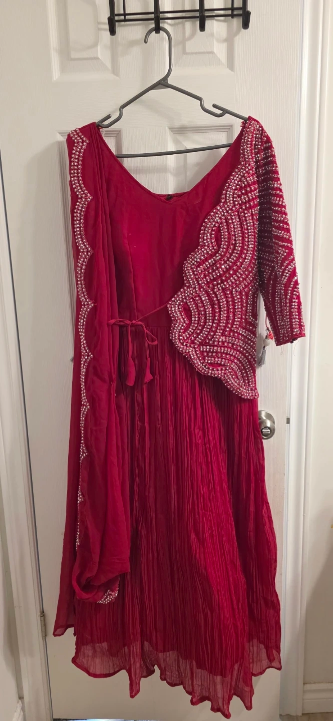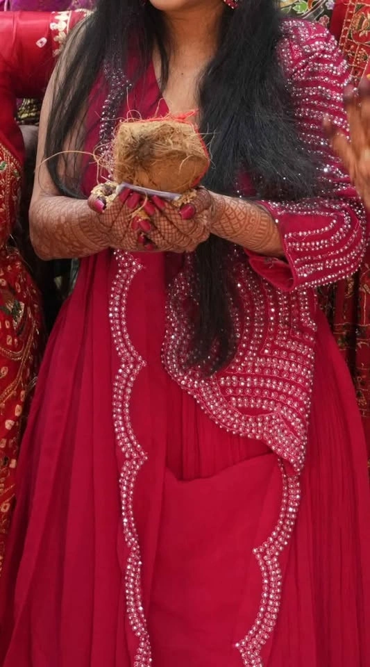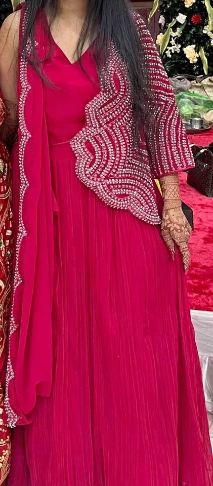 Elegant Red Party & Wedding Wear Indo-Western Red Lehenga Gown