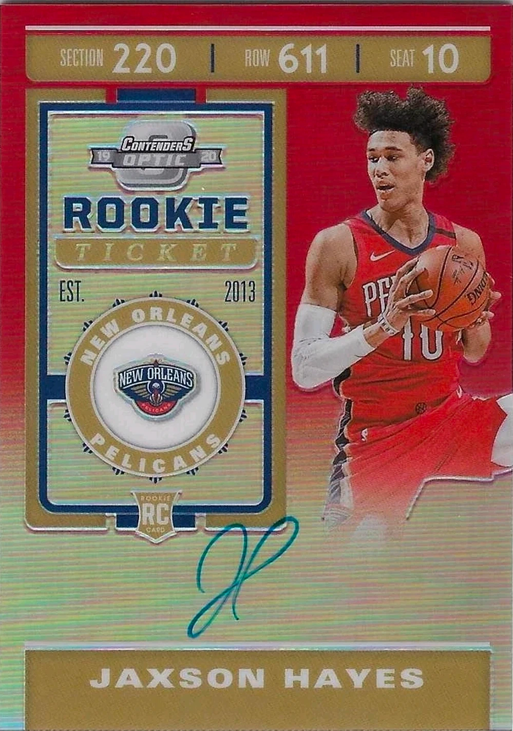 Selling a Jaxson Hayes Rookie Ticket auto card. The card is from the 2019-20 Contenders Optic series. It's in great condition!