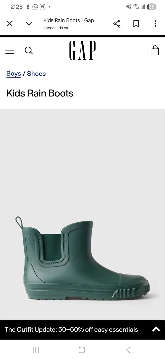 Selling a pair of GAP kids rain boots in a nice green colour! They are size 1/2. Excellent condition! Used seldomly by one child over one season and grew out of them quickly.