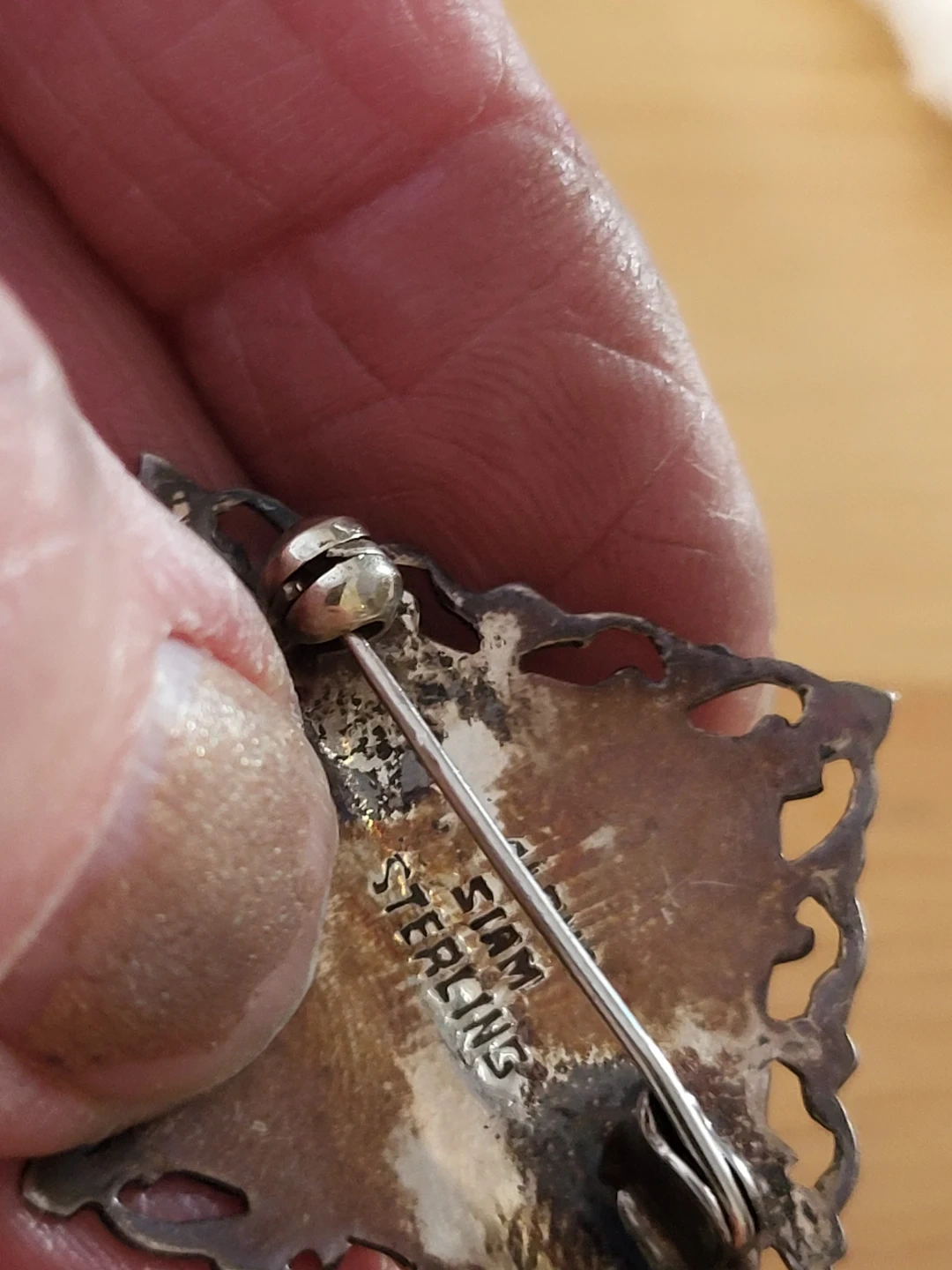 A collection of five vintage brooches and one pendant. ALL pieces marked Sterling or 925 some featuring mother-of-pearl inlay. The total weight of the brooches and pendant is 19 grams.