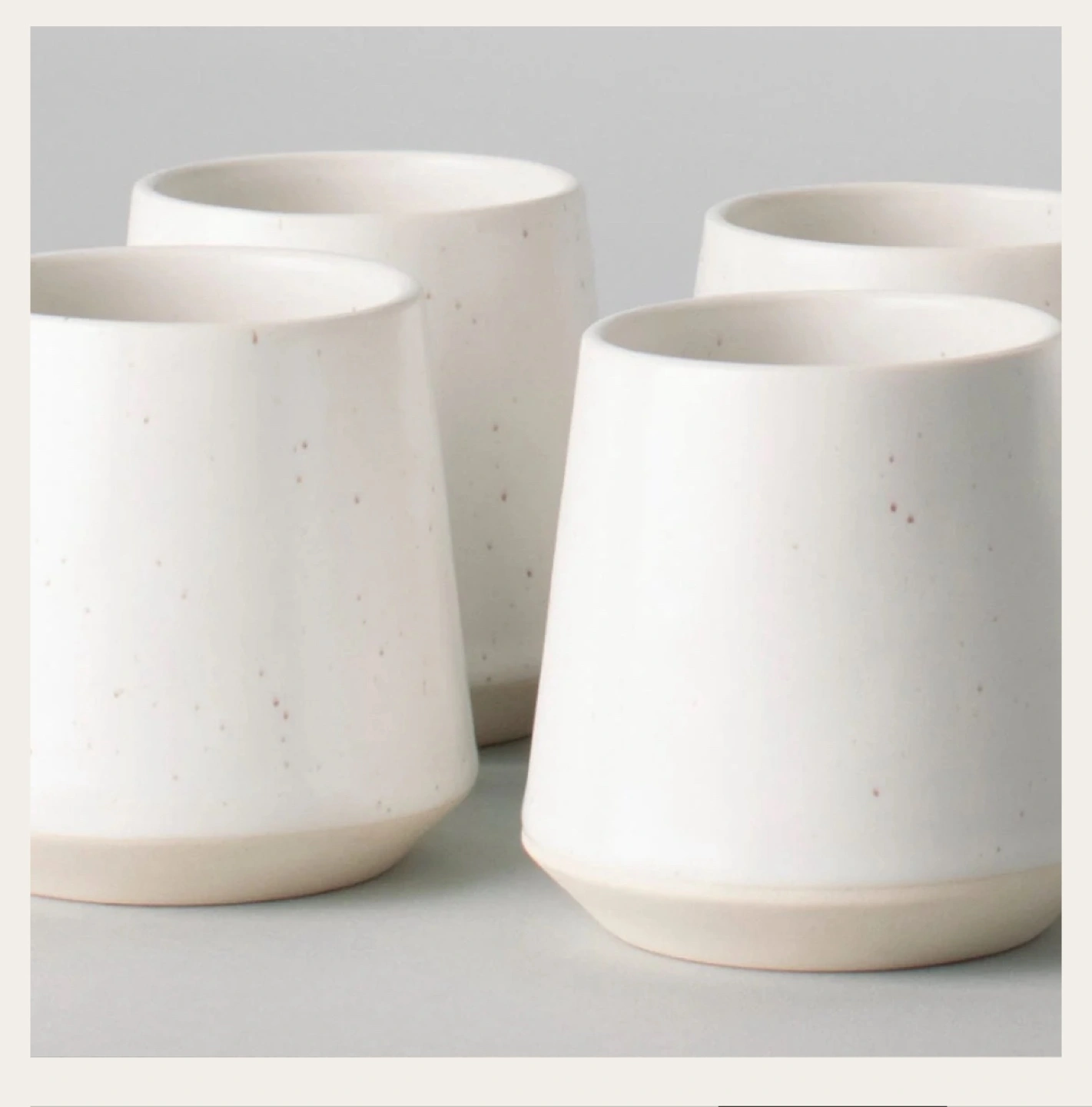 Selling a set of four Fable cups. These mugs are in great condition. Semi-matte in the colour Speckled White. Perfect for enjoying your morning coffee or tea! Originally priced at $79 before tax.