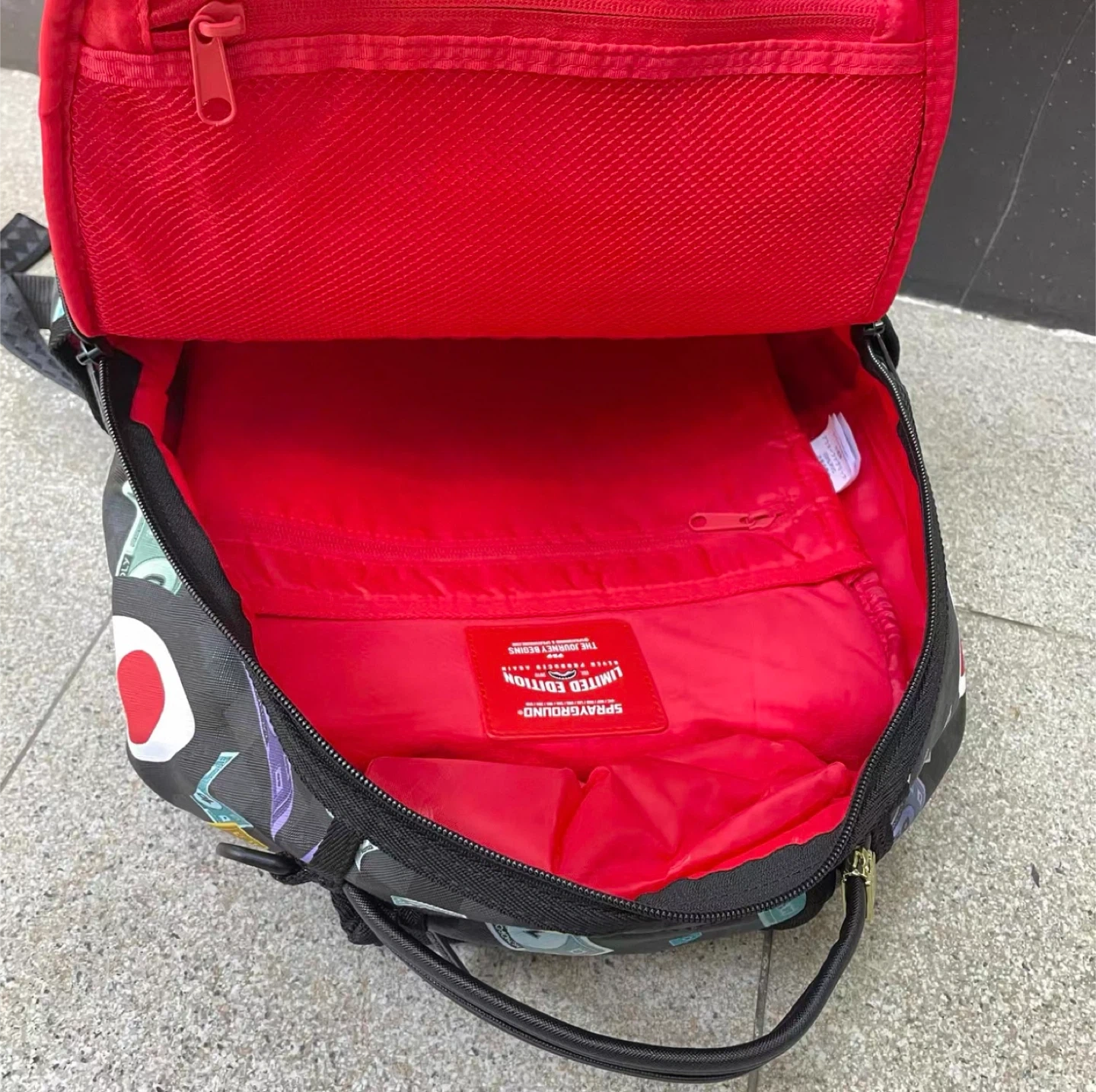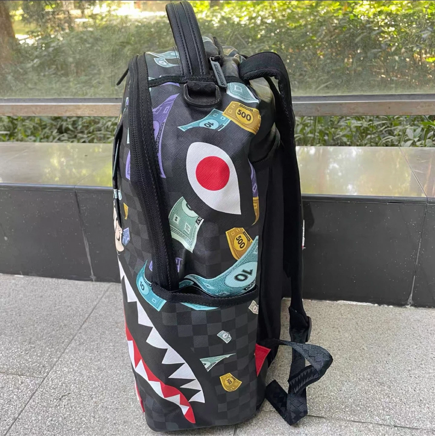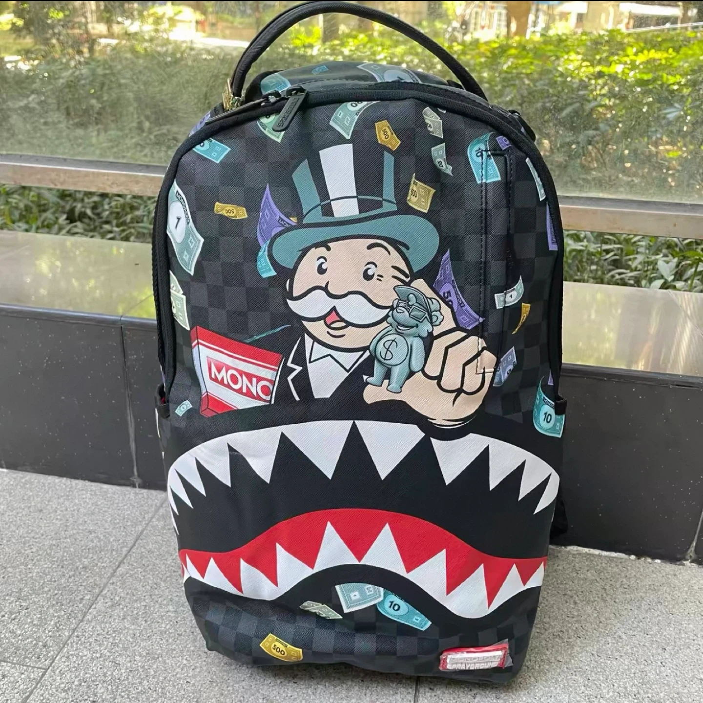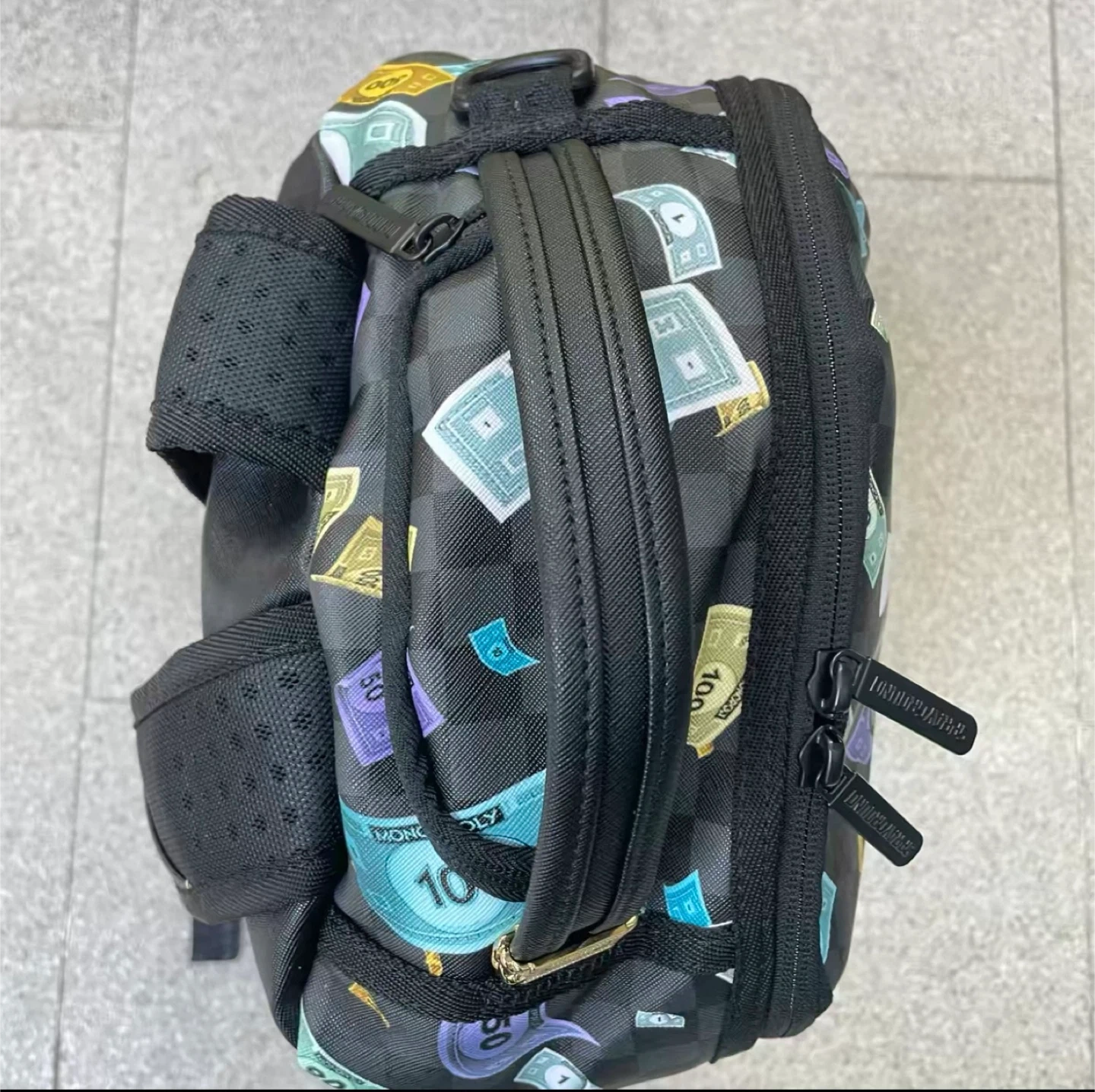 This Sprayground backpack features a collaboration with Monopoly, showcasing the iconic "Shark Week" design with a money motif. It's a spacious bag with multiple compartments and adjustable straps. Plenty of room for your daily essentials! Discontinued so the price is kinda high