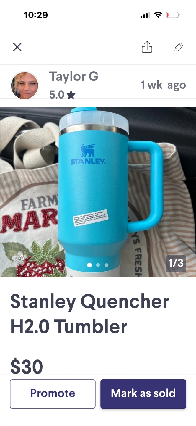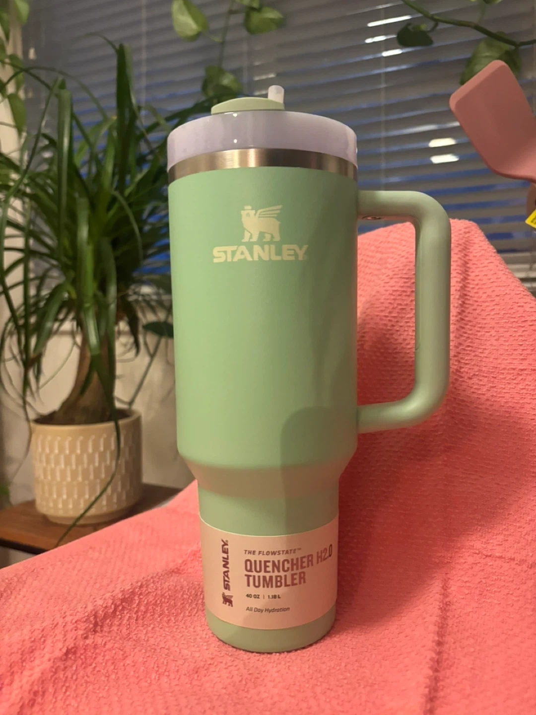 Fuzzy Easter key chain This is a 30 oz Stanley Flowstate Quencher H2.0 Tumbler in a pale pink colour. It's designed for all-day hydration. Keeps drinks cold for hours!