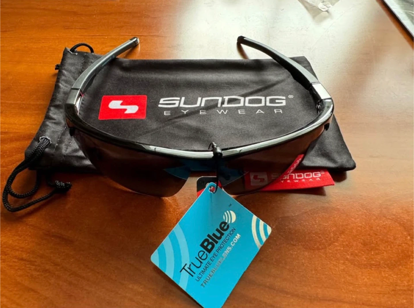 Sundog Eyewear sunglasses with True Blue ultimate eye protection. Includes a black carrying pouch. These shades offer 100% UVA/UVB protection.
