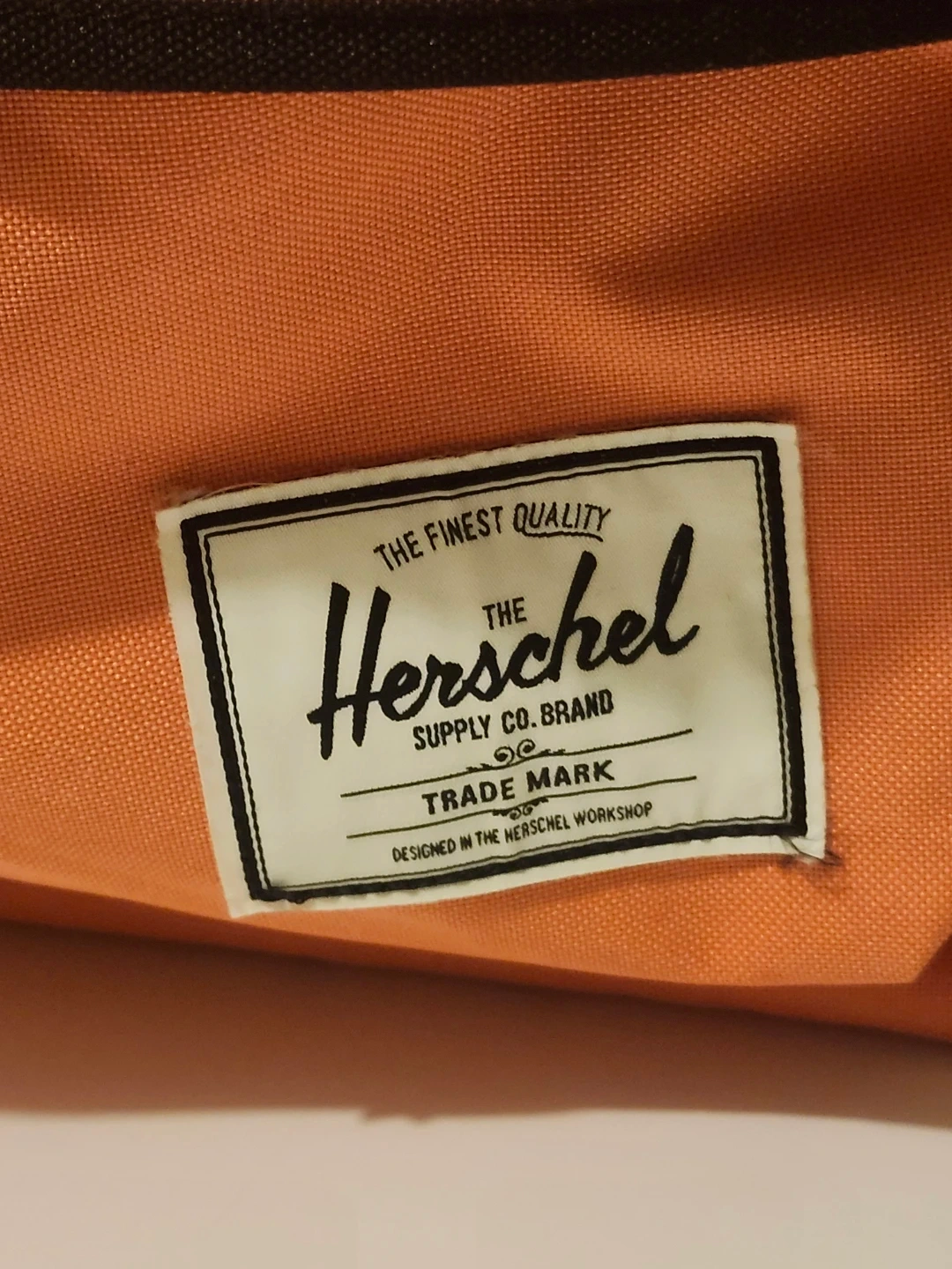 This Herschel backpack comes in a bright orange colour. It has padded shoulder straps for comfort. Bottle and umbrella holder on the 2 sides. It's great for everyday use or for school !