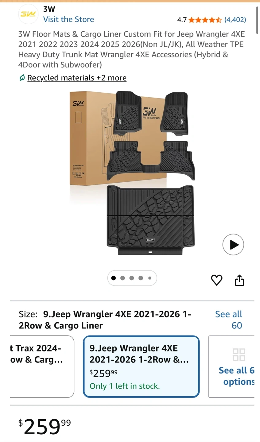 NEW 3W Floor Mats + Cargo Liner Jeep Wrangler 2021-2026