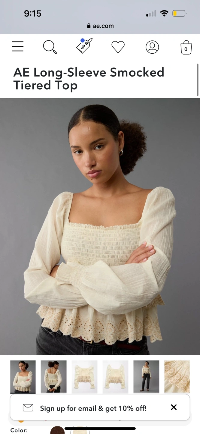 American Eagle Outfitters Long-Sleeve Smocked Tiered Top