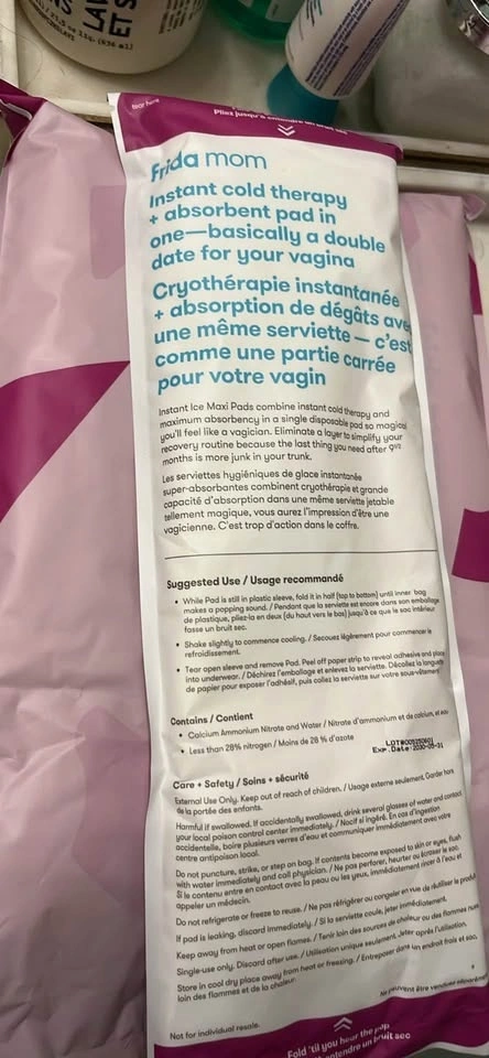 Individually packed Frida Mom Ice Pads. Only 3 left. Great to use after vaginal tears postpartum. These were a lifesaver after I had second-degree tears during birth.