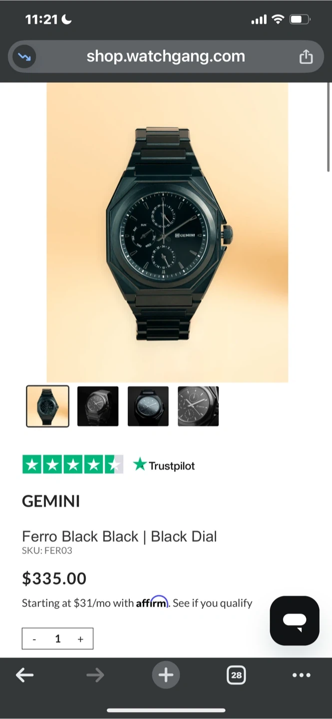Selling a GEMINI Ferro watch in black. It features a black dial and is in great condition. Originally bought for $335.