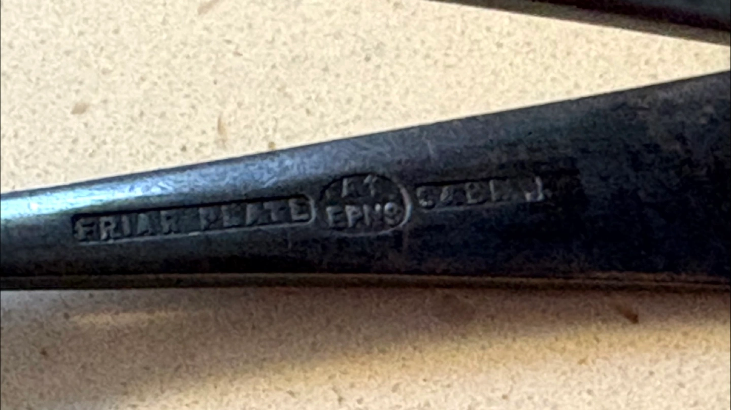 These tongs are made of EPNS, likely Sheffield silver plate.