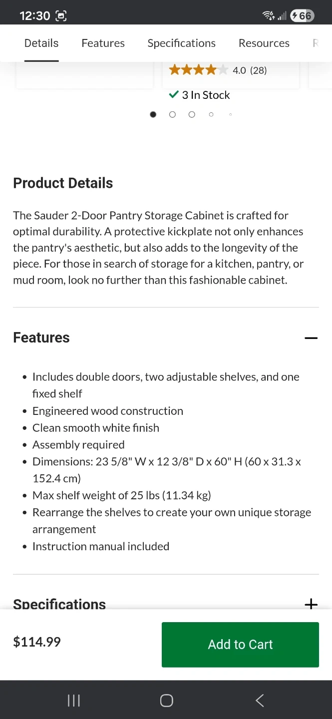 This is a white storage cabinet with double doors and three interior shelves. It's a versatile piece for organizing your home. Perfect for storing linens, books, or general household items.