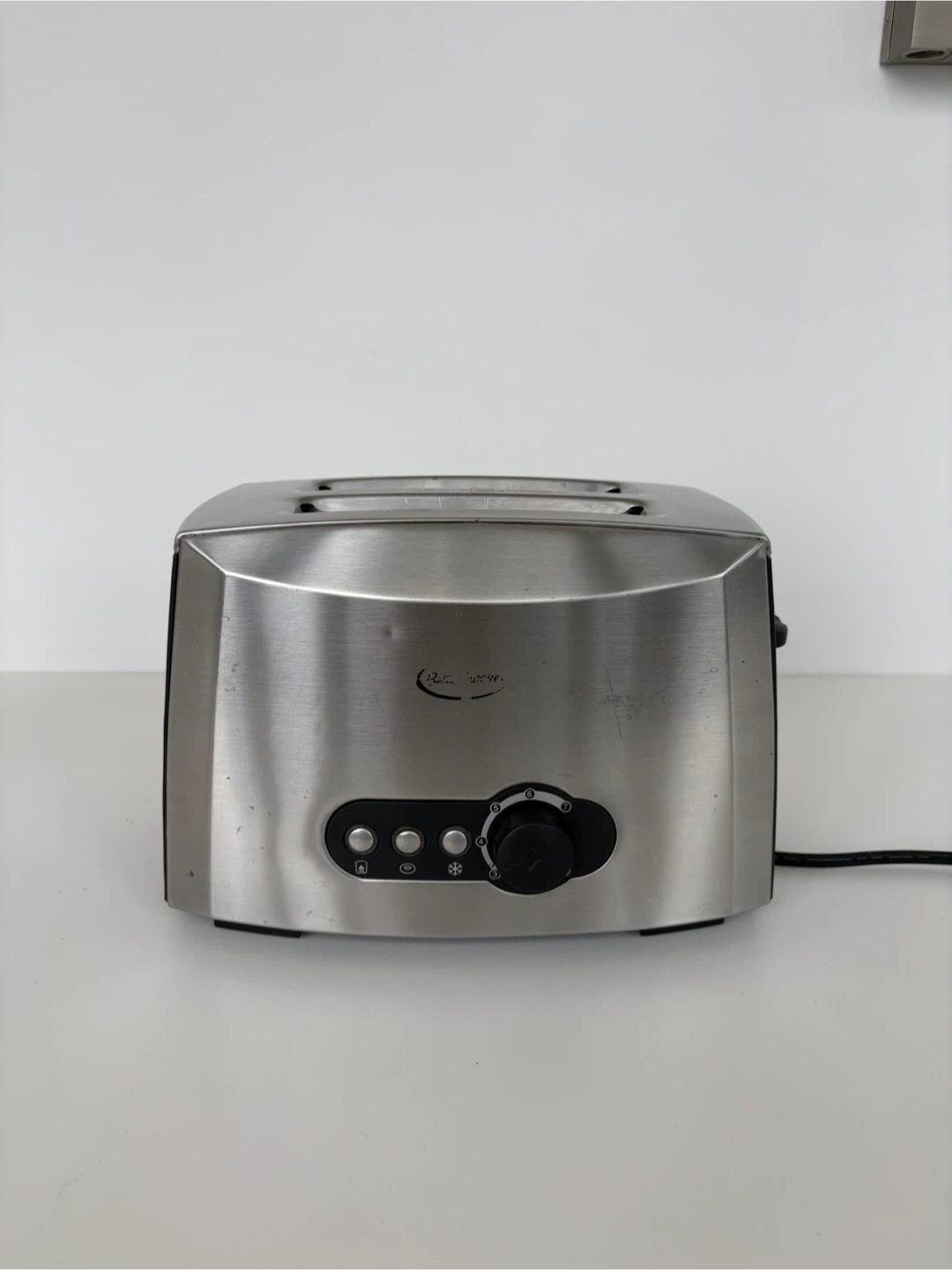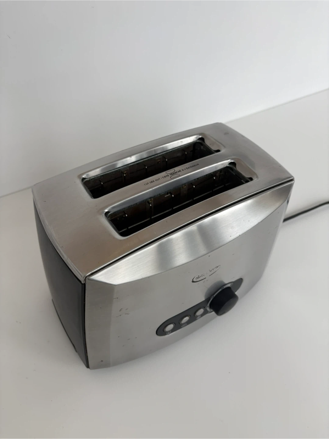 This is a brushed stainless steel Breville 2-slice toaster. It’s in good used condition, works great and thoroughly cleaned.