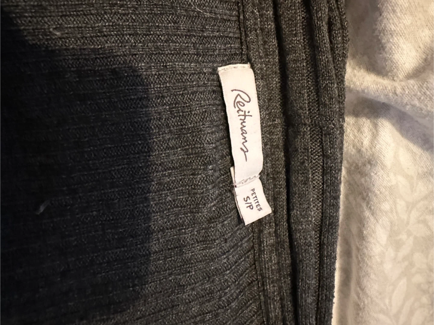 Selling a gently used Reitmans Petites cardigan in size small. It's a lovely gray colour and has a comfortable, relaxed fit. Perfect for layering on cooler days!