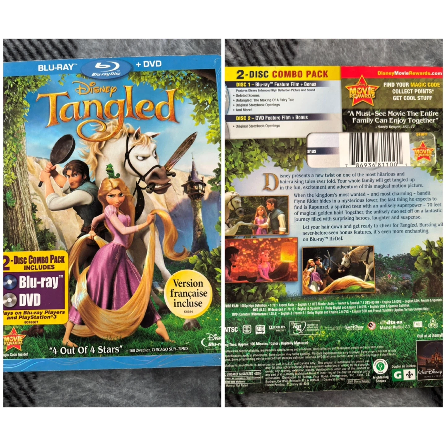 For sale is a Disney movie, Tangled. Join Rapunzel and Flynn Rider on a fantastic journey filled with surprising heroes, laughter, and suspense. This 2-disc combo pack includes both Blu-Ray and DVD formats, plus bonus features.