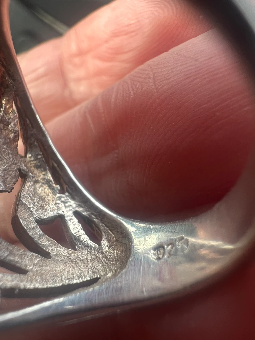 This unique ring is crafted from sterling silver with a delicate filigree design. It's a statement piece that adds a touch of elegance to any outfit. The openwork pattern allows for a comfortable and stylish fit.