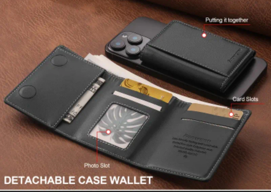 Modern Faux Synthetic Synthetic Leather Magnetic Closure Flip Wallet with 5 Card Slots & Detachable Case.