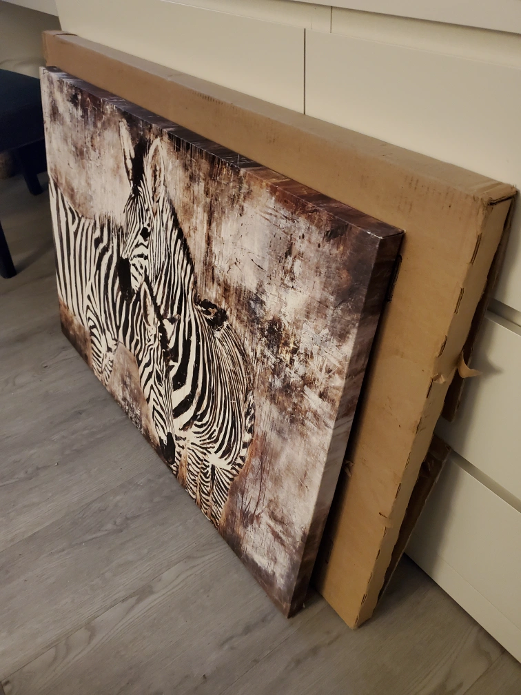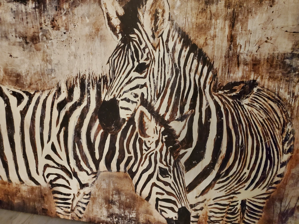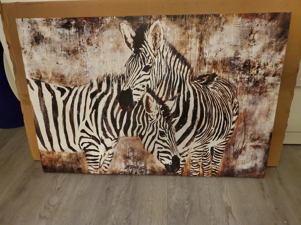 Canvas wall art print featuring a pair of zebras. Comes in a box, great for gift giving.