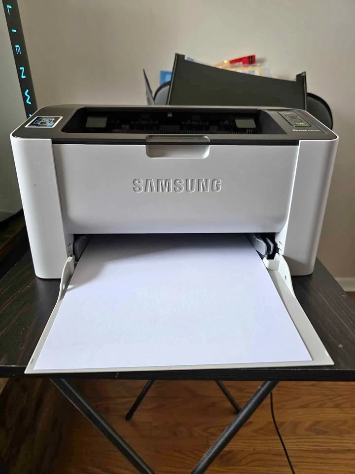 Selling a Samsung Xpress SL-M2020W Wireless Laser Printer. Perfect for home office, students, or small business. Key Features: Monochrome laser printing (sharp black & white text), Wireless (Wi-Fi) connectivity, Compact design — ideal for small spaces, High-quality text printing for documents, reports, forms, Easy setup and reliable performance, Works with laptops, phones, tablets, and Macs/PCs. Perfect if you need a dependable everyday printer without ink mess. Condition: Excellent condition, fully functional, clean, comes with power cable and tested.