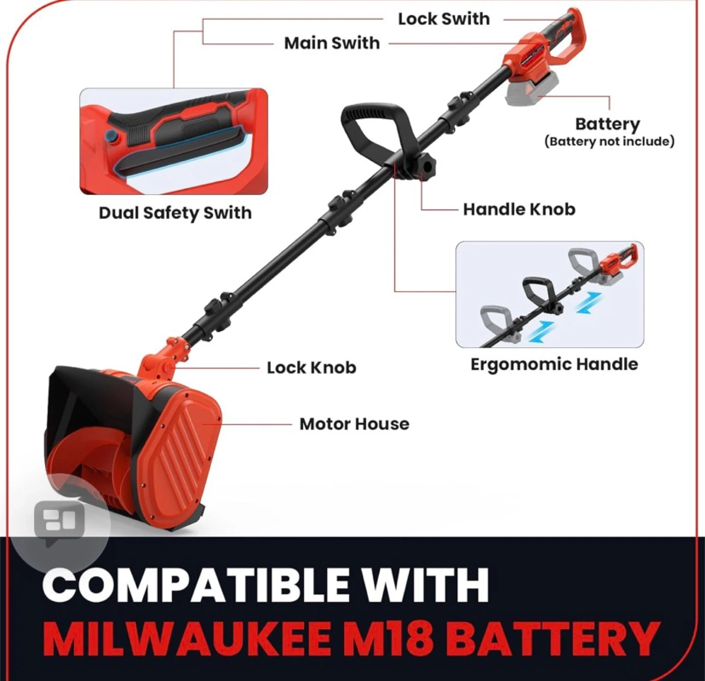 Sxg Sxg Electric Snow Shovel for Milwaukee M18 18V Battery, 11" Brushless Snow Blower with Adjustable Handle, Max 26 FT Snow Thrower, Cordless Snow Shovel M18 for Driveway, Sidewalk, Patio, Deck (No Battery)