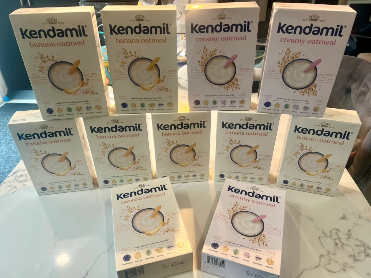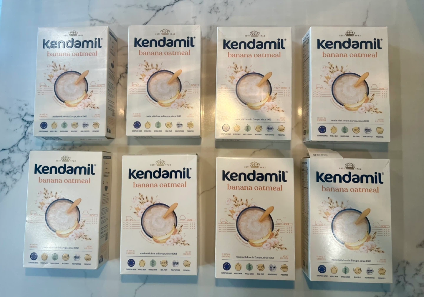 This listing is for Kendamil creamy oatmeal & banana baby cereal. It's made with love in Europe since 1962. Best before dates range from December 2026 to December 2027 .