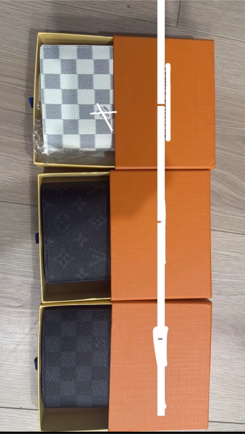Three Louis Vuitton wallets in original boxes. Includes one Damier Graphite checkered wallet and two Monogram Eclipse wallets. These are perfect for organizing your cards and cash in style!