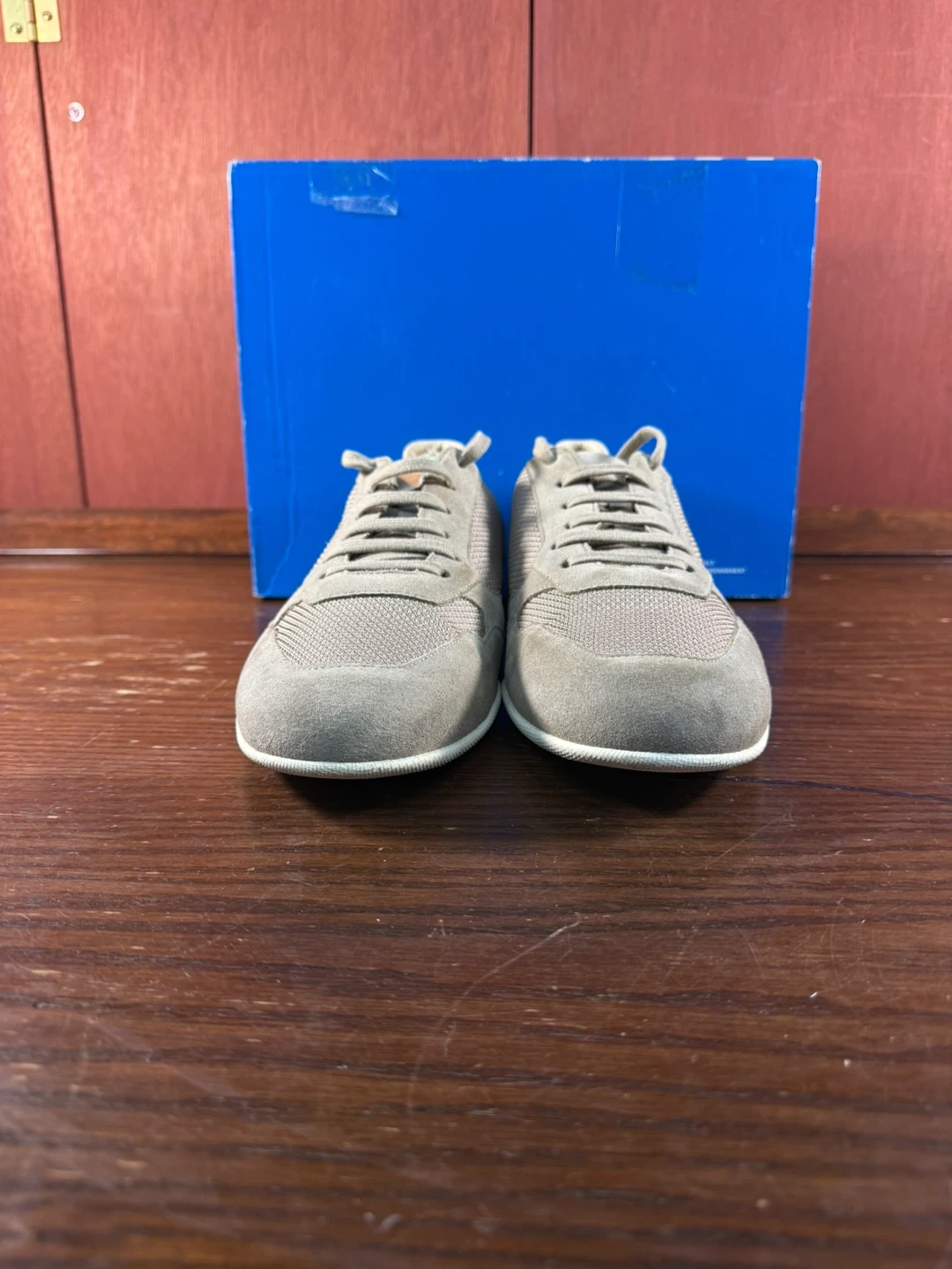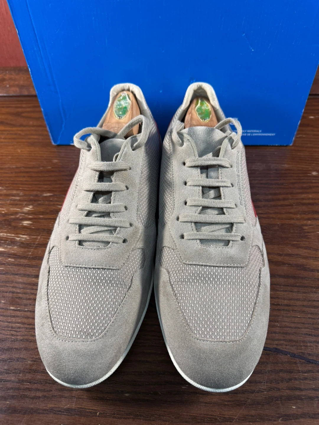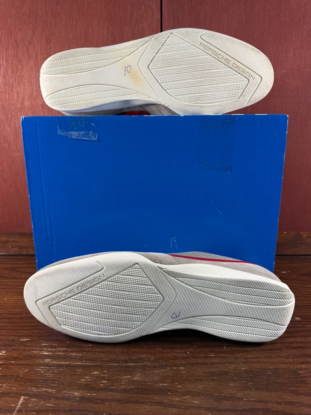 Elevate your footwear game with these Porsche Design Racer Velours Mesh Asphalt sneakers in men's size 11! These sneakers feature a stylish grey velours and mesh upper with a distinctive red stripe.