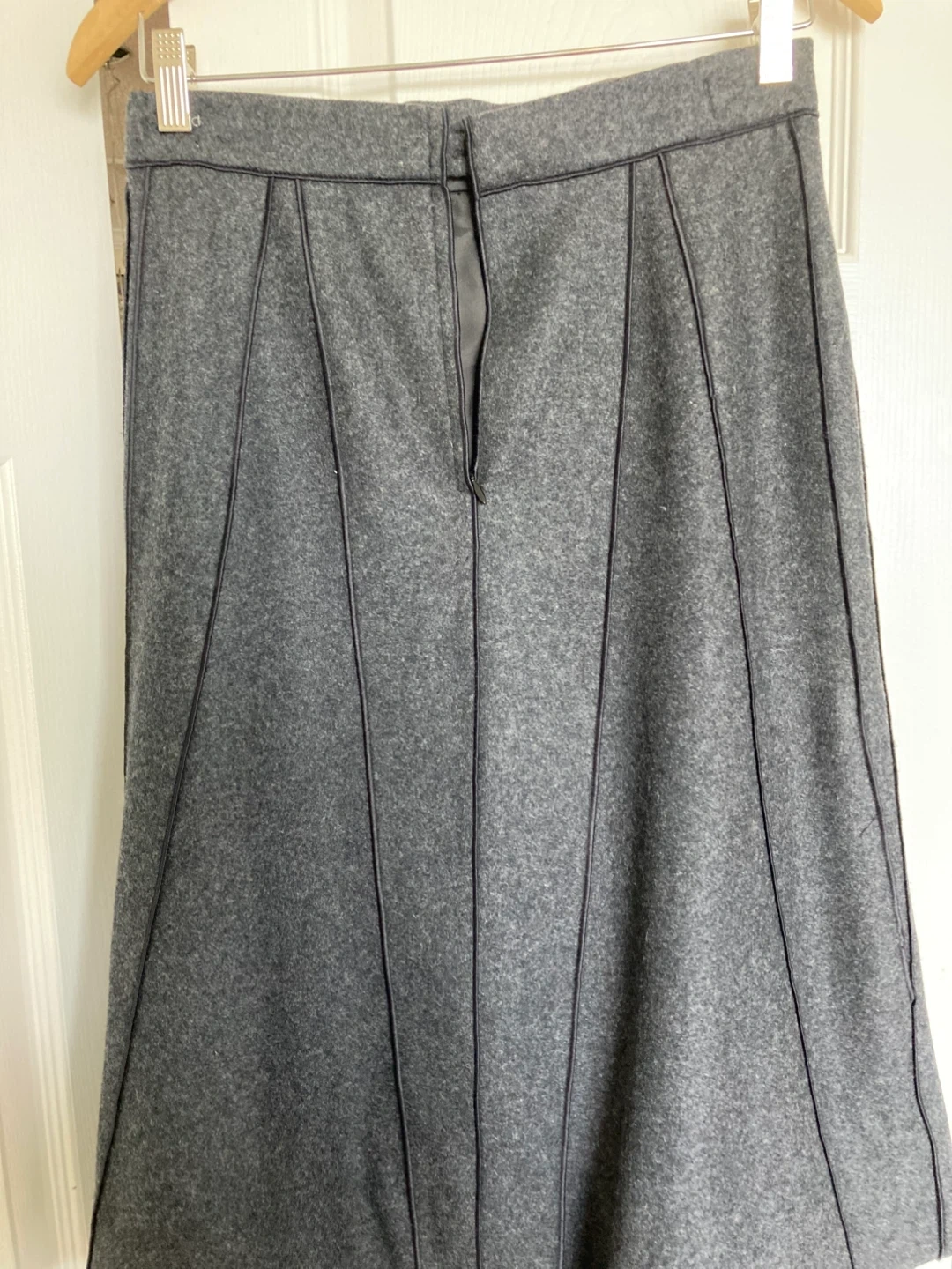 This is an elegant classy skirt suit in a grey colour. The suit features a tailored jacket and a pleated skirt. Very flattering style. It's made from a textured wool blend material. Perfect for professional or formal occasions! Fantastic craftsmanship. Excellent condition.