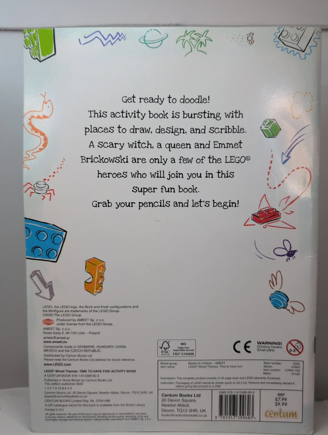 This activity book is bursting with places to draw, design, and scribble. It includes a 24-page book and LEGO elements. The complete product consists of 24 page book and LEGO elements (Emmet figure, accessories). Recommended for ages 5+.