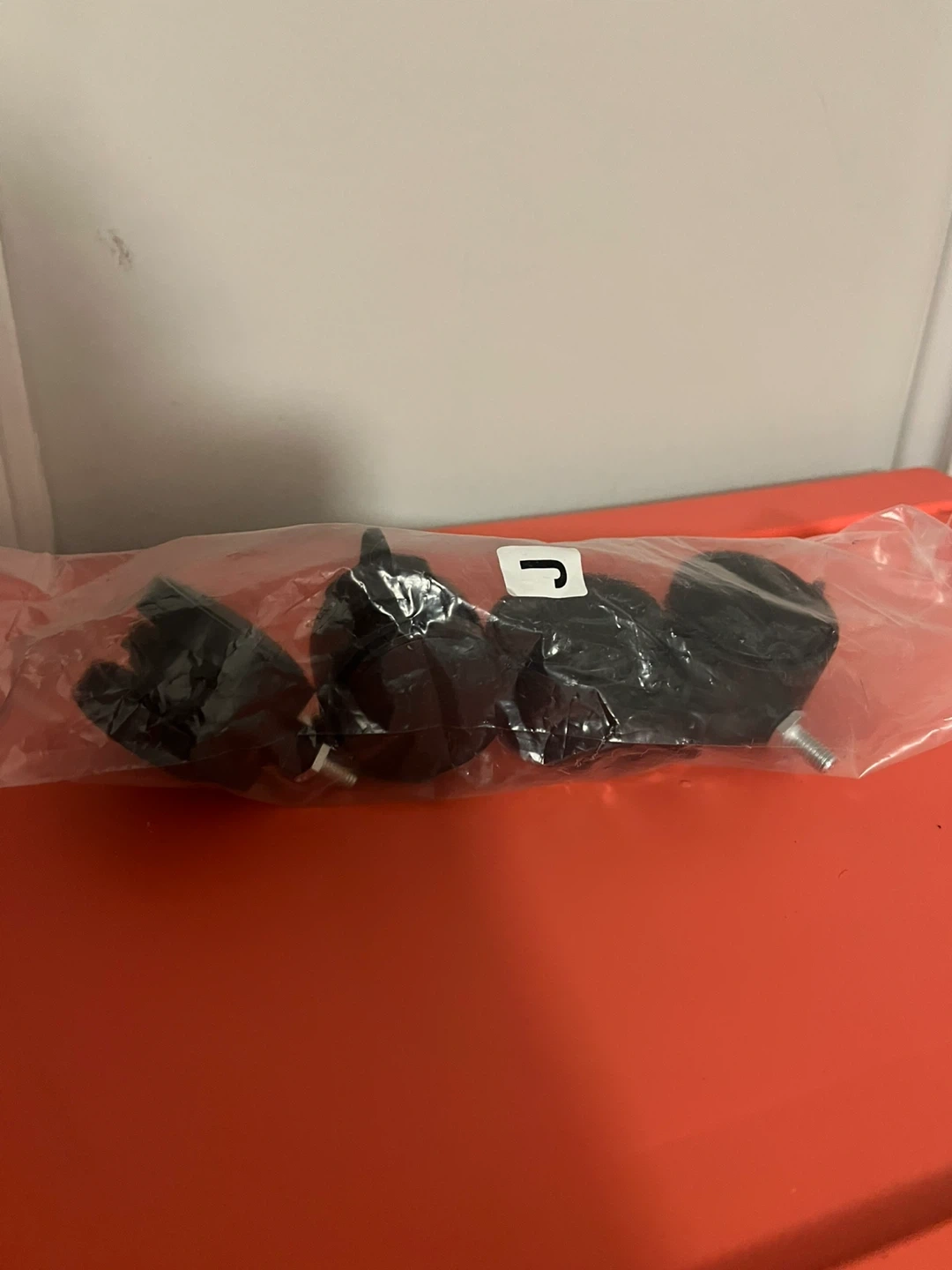 Set of four black replacement feet, likely for furniture or equipment. Includes screws for attachment. These are great for replacing worn-out or missing feet to stabilize items.