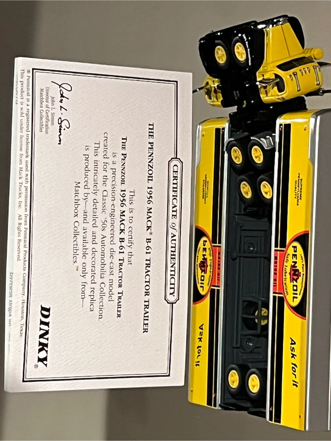 Dinky Pennzoil Mack Yellow Black Silver Die Cast Model Trailer π