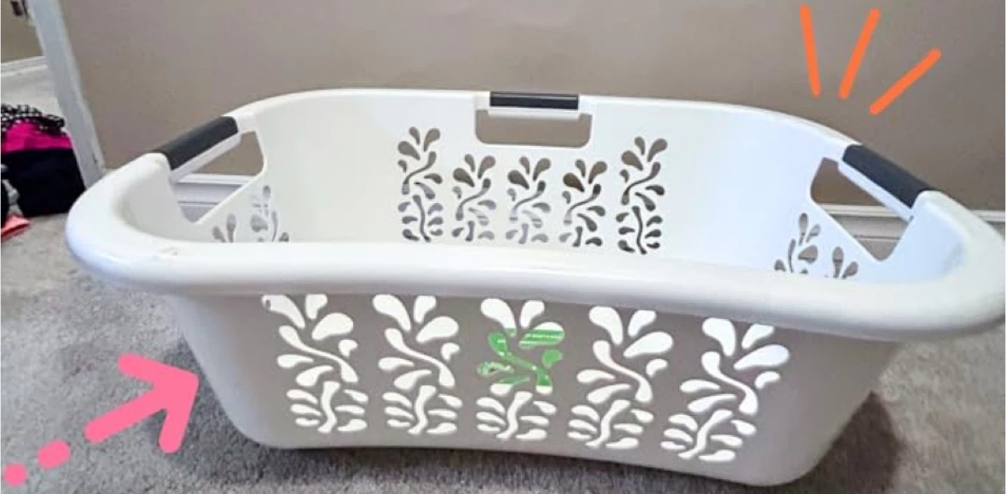 This is a Hip-Hold Laundry Basket in Mindful Mint. It has a capacity of 44 L. The basket measures 26.38" L x 18.11" W x 10" H. It's made of plastic with decorative cutouts.