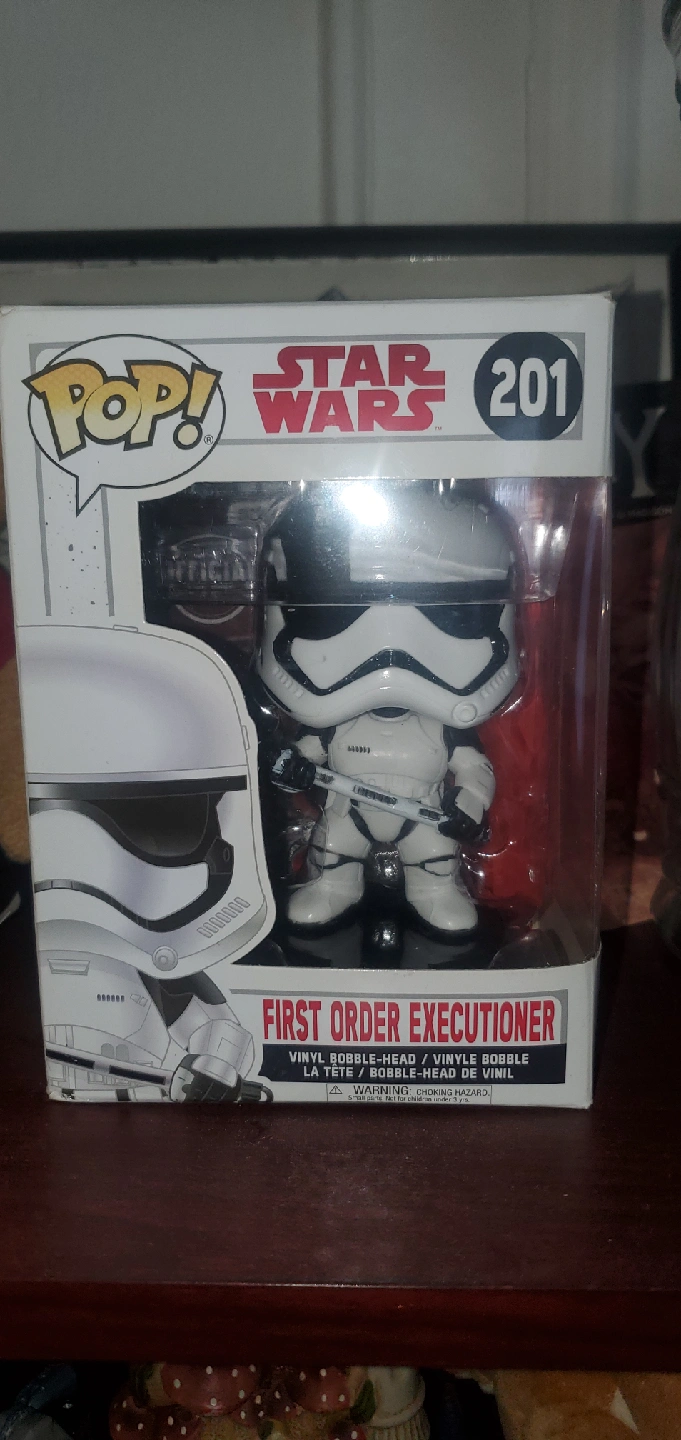 Selling a Funko Pop! Star Wars figure of the First Order Executioner, number 201. It's in its original box and ready for a new home!