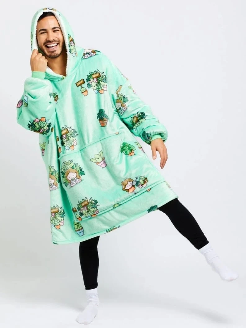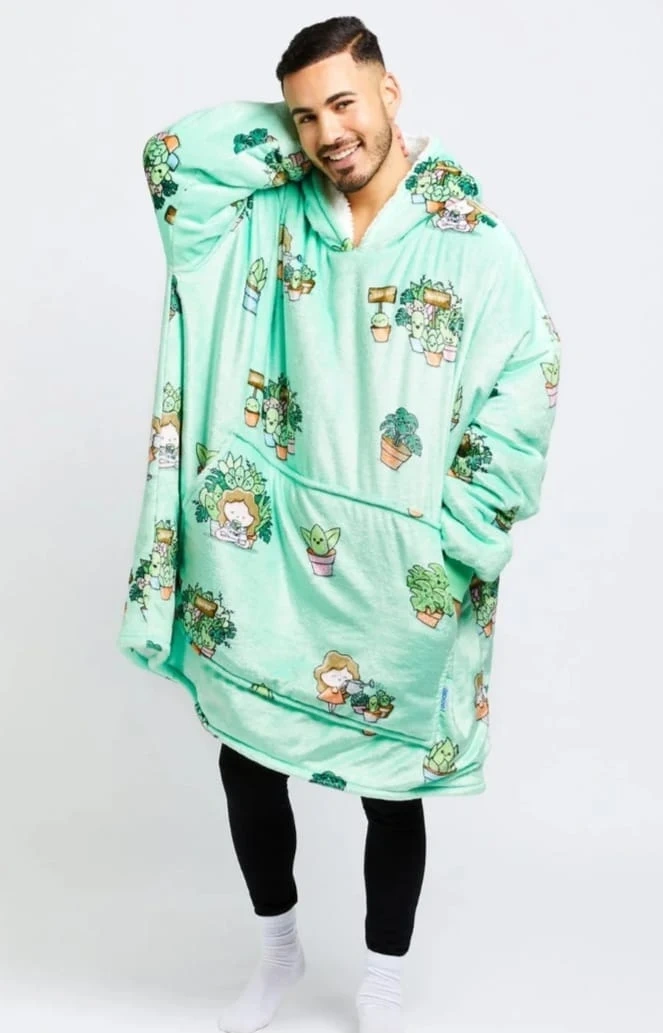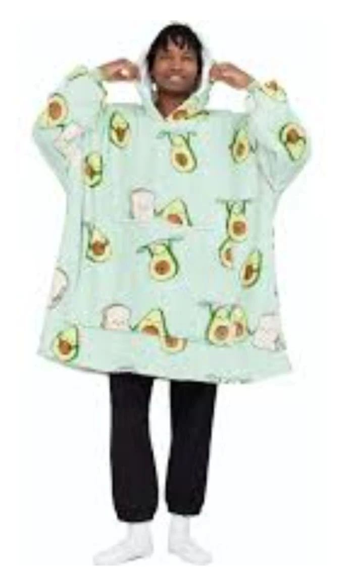 Stay cozy and warm with The Oodie! It's a super soft and oversized wearable blanket hoodie. Perfect for lounging around the house on chilly days. Available in fun prints like avocado, succulents, and pizza! $80 dollars each.