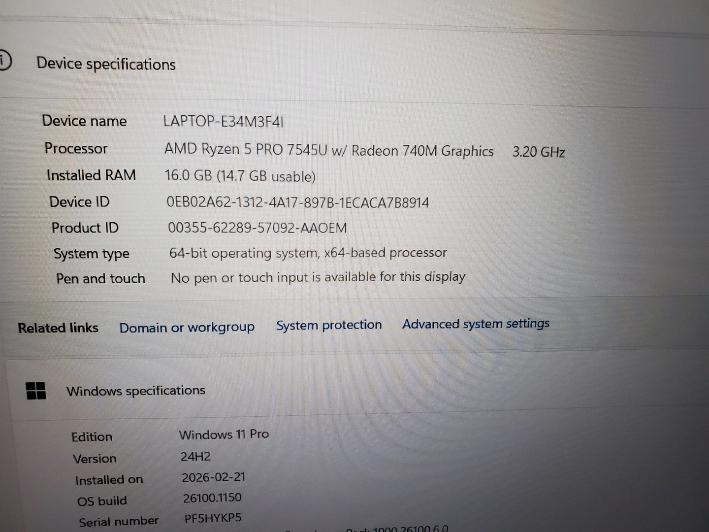 • AMD Ryzen 5-7545U CPU @ 3.20 GHz (6-Core Processor!)