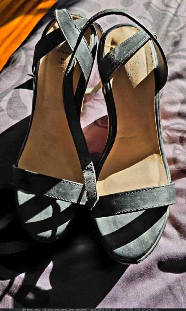 Step out in style with these Call It Spring black wedge sandals, perfect for adding a touch of elegance to any outfit. These stylish sandals feature a comfortable wedge heel and secure ankle strap. These shoes are in used condition, showing some signs of wear, but have lots of life left. Size 7.5. Brand: Call It Spring, Style: Wedge Sandal, Colour: Black, Heel Type: Wedge, Fastening: Ankle Strap. If the ad is up, the item is available!