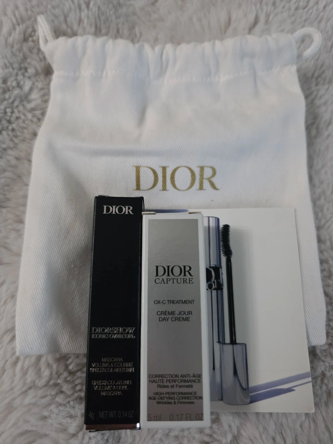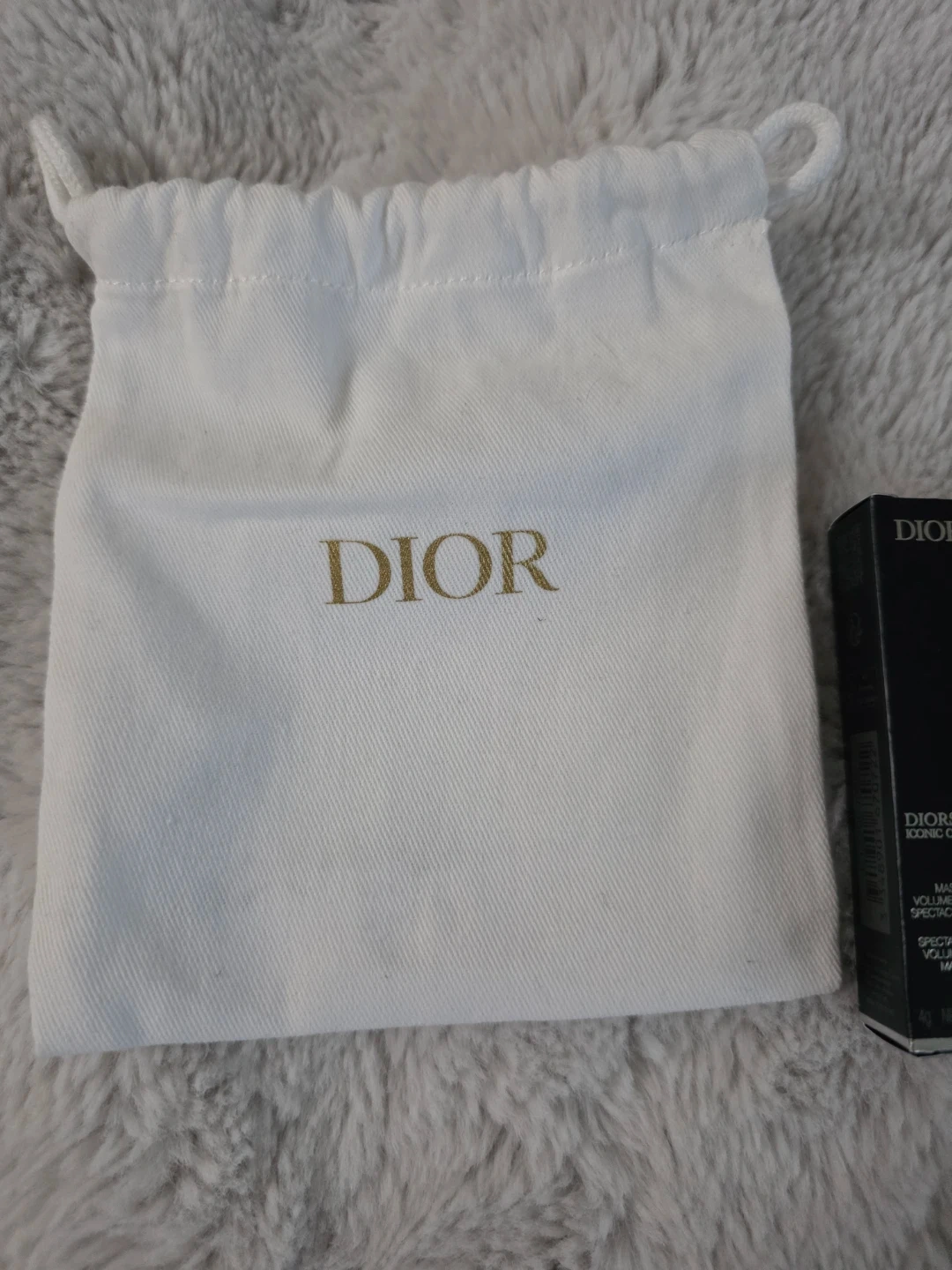 * white drawstring pouch that can be used as a catch all in bags, branded gold logo
